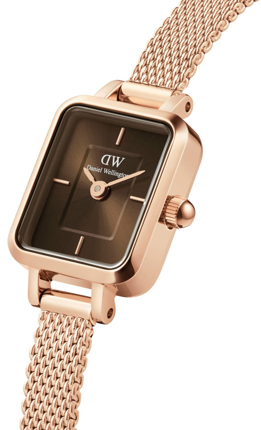 Женские наручные часы с минеральным стекломМинеральное стеклоМинеральное стекло представляет собой искусственно выращенный минерал кварца. Такое стекло отличается особой устойчивостью к повреждениям и царапинам. Уступает по некоторым качествам сапфировому стеклу. Daniel Wellington Quadro Mini DW00100649, кварцевый механизм с высокой точностью. Класс водозащиты: 30 метров, позволит защитить корпус от случайных брызг или капель дождя. Корпус часов изготовлен из стали с PVD-покрытиемPVDУльтратонкое покрытие наносится в технике вакуумного напыления, сочетает в себе нитрид титана особой прочности со слоем золота или оксида хрома. Несёт в себе декоративную или защитную функцию.. Стальной браслет на раскладной застёжкеРаскладная застёжкаТакой тип застёжки используется только на браслетах из металла. Она никогда не раскрывается полностью, происходит разделение на 2 и более частей. Раскладывающая застёжка снизит вероятность потери часов к минимуму. с PVD-покрытиемPVDУльтратонкое покрытие наносится в технике вакуумного напыления, сочетает в себе нитрид титана особой прочности со слоем золота или оксида хрома. Несёт в себе декоративную или защитную функцию.. Двухуровневый циферблат выполнен по технологии Sunray (солнечные лучи) и украшен фирменным логотипом Daniel Wellington. Накладные метки в виде штрихов. Рифленая заводная головка. Индивидуальный серийный номер.