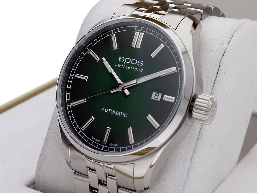 Мужские швейцарские механические часы Epos Passion 3501.132.20.13.30, механический механизм (автоматический калибр) с высокой точностью. Сапфировое стеклоСапфировое стеклоПрочный и надёжный материал из кристалла сапфира синтетического происхождения, характеризующийся особой твёрдостью и устойчивостью к царапинам и повреждениям. устойчивое к появлению царапин, обладающее высокой прозрачностью. Класс водозащиты: 100 метров, позволит плавать, нырять и заниматься другими водными видами спорта. Корпус и браслет часов изготовлены из стали. Прозрачная задняя крышка. Браслет с раскладной застёжкойРаскладная застёжкаТакой тип застёжки используется только на браслетах из металла. Она никогда не раскрывается полностью, происходит разделение на 2 и более частей. Раскладывающая застёжка снизит вероятность потери часов к минимуму.. Стрелки и метки с люминесцентным покрытиемЛюминесцентное покрытиеПозволяет считывать показания времени в темноте. Производители наносят на стрелки, часовые индексы, безель или поверхность циферблата светонакопительный состав, дающий холодное свечение.. Окошко даты находятся в положении 3 часа. Декорированный механизм.