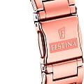 Яркий стиль и функциональность этих часов придутся по душе активной девушке. Кварцевый механизм с высокой точностью. Минеральное стеклоМинеральное стеклоМинеральное стекло представляет собой искусственно выращенный минерал кварца. Такое стекло отличается особой устойчивостью к повреждениям и царапинам. Уступает по некоторым качествам сапфировому стеклу. устойчивое к появлению царапин, обладающее высокой прозрачностью. Класс водозащиты: 50 метров, позволит защитить корпус от случайных брызг или капель дождя. Корпус часов изготовлен из нержавеющей стали 316L с PVDPVDУльтратонкое покрытие наносится в технике вакуумного напыления, сочетает в себе нитрид титана особой прочности со слоем золота или оксида хрома. Несёт в себе декоративную или защитную функцию. покрытием. БезельБезельВнешний ободок, закрепляющий стекло. В спортивных часах так называется поворотное кольцо с делениями на циферблате, выполняет роль таймера – замеряет отрезки времени на шкале. Неподвижный безель – элемент декора. Однонаправленно вращающийся безель на дайверских часах позволяет фиксировать моменты погружения и выныривания на поверхность. украшен фианитами. Браслет с раскладной застёжкойРаскладная застёжкаТакой тип застёжки используется только на браслетах из металла. Она никогда не раскрывается полностью, происходит разделение на 2 и более частей. Раскладывающая застёжка снизит вероятность потери часов к минимуму..