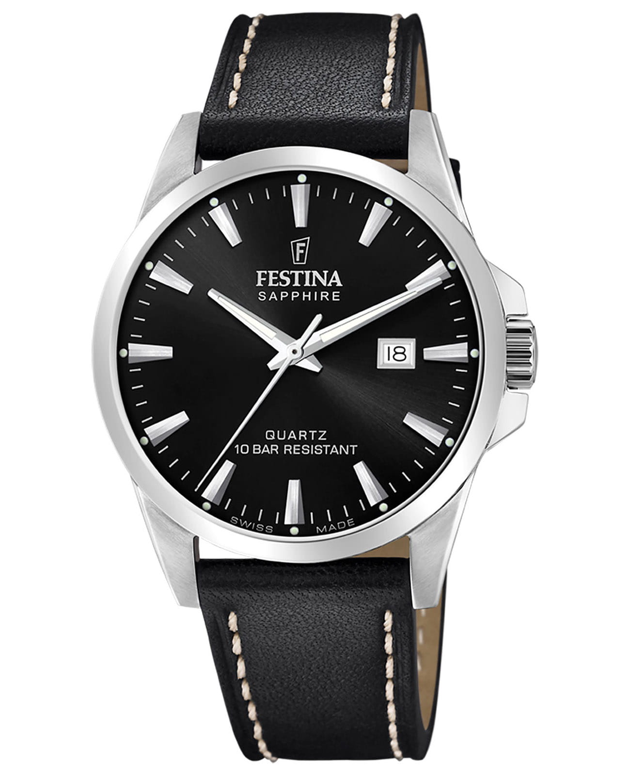 Практичные и стильные часы с круглым корпусом идеальны для современного ритма жизни. Кварцевый механизм с высокой точностью. Сапфировое стеклоСапфировое стеклоПрочный и надёжный материал из кристалла сапфира синтетического происхождения, характеризующийся особой твёрдостью и устойчивостью к царапинам и повреждениям. устойчивое к появлению царапин, обладающее высокой прозрачностью. Циферблат с люминесцентным покрытиемЛюминесцентное покрытиеПозволяет считывать показания времени в темноте. Производители наносят на стрелки, часовые индексы, безель или поверхность циферблата светонакопительный состав, дающий холодное свечение. стрелок. Класс водозащиты: 100 метров, позволит плавать, нырять и заниматься другими водными видами спорта. Корпус часов изготовлен из нержавеющей стали. Кожаный ремешок с классической застежкой.