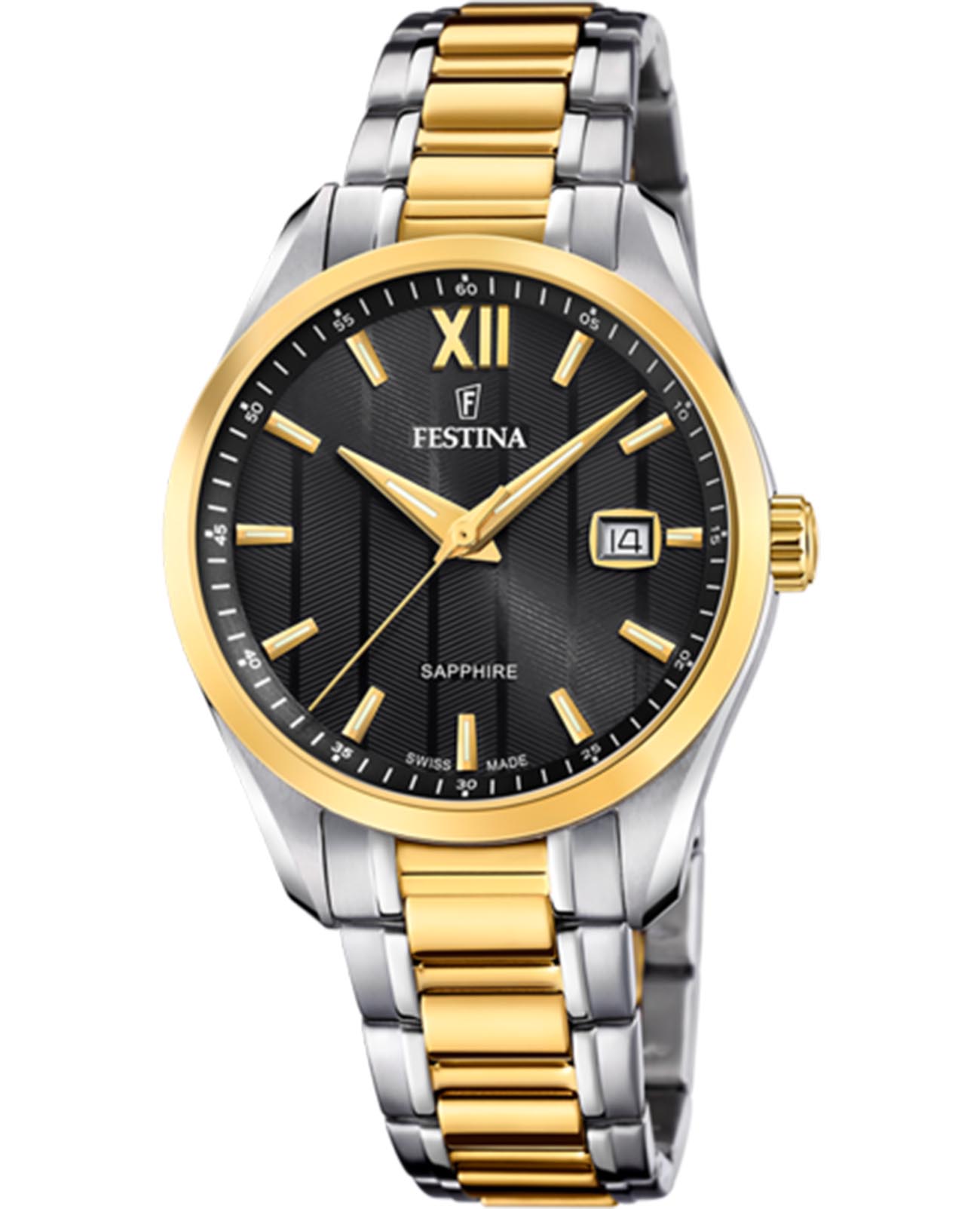 Практичные и стильные часы Festina F20027/4 с круглым корпусом на стальном браслете идеальны для современного ритма жизни. Кварцевый механизм с высокой точностью. Сапфировое стеклоСапфировое стеклоПрочный и надёжный материал из кристалла сапфира синтетического происхождения, характеризующийся особой твёрдостью и устойчивостью к царапинам и повреждениям. устойчивое к появлению царапин, обладающее высокой прозрачностью. Класс водозащиты: 50 метров, позволит защитить корпус от случайных брызг или капель дождя. Корпус часов изготовлен из нержавеющей стали. Стальной браслет с частичным IP-покрытиемIP-покрытиеМетод ионного напыления. Демонстрирует повышенную устойчивость к истиранию, окислению и химическим веществам. Под воздействием высокого давления и температуры около 1500°C молекулы металла надёжно соединяются с частицами корпуса часов. на раскладной застёжкеРаскладная застёжкаТакой тип застёжки используется только на браслетах из металла. Она никогда не раскрывается полностью, происходит разделение на 2 и более частей. Раскладывающая застёжка снизит вероятность потери часов к минимуму.. Стрелки с люминесцентным покрытиемЛюминесцентное покрытиеПозволяет считывать показания времени в темноте. Производители наносят на стрелки, часовые индексы, безель или поверхность циферблата светонакопительный состав, дающий холодное свечение.. Окошко даты находится в положении 3 часа.