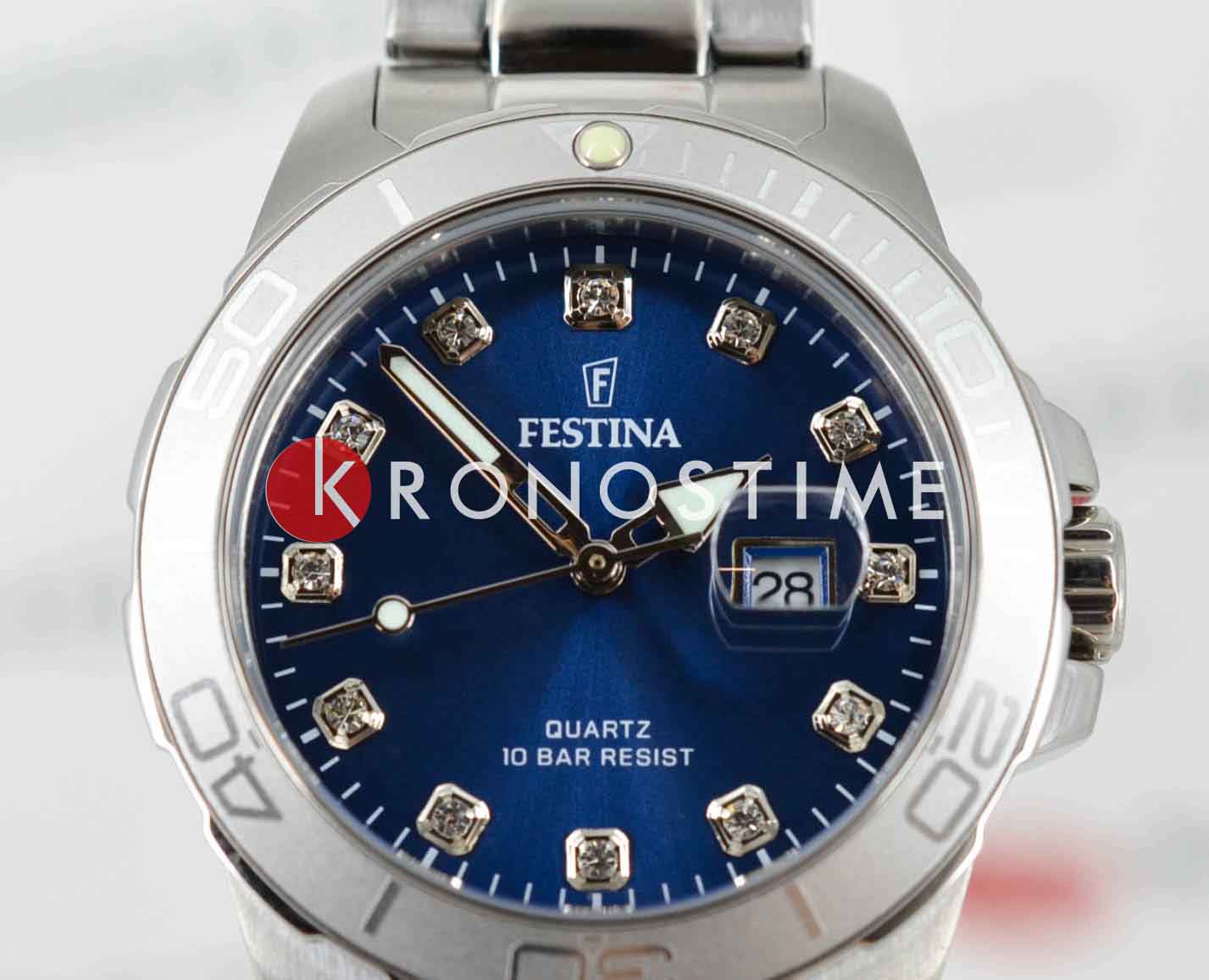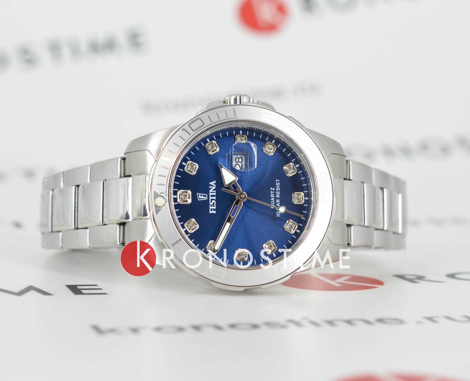 Наручные часы Festina F20503/6 — это стильный аксессуар, сочетающий в себе элегантный дизайн и современные технологии. Кварцевый механизм обеспечивает высокую точность хода, не требуя частой подзаводки. Минеральное стеклоМинеральное стеклоМинеральное стекло представляет собой искусственно выращенный минерал кварца. Такое стекло отличается особой устойчивостью к повреждениям и царапинам. Уступает по некоторым качествам сапфировому стеклу. защищает циферблат от царапин и отличается отличной прозрачностью. Стрелки с люминесцентным покрытиемЛюминесцентное покрытиеПозволяет считывать показания времени в темноте. Производители наносят на стрелки, часовые индексы, безель или поверхность циферблата светонакопительный состав, дающий холодное свечение. позволяют легко считывать время даже в темноте. Циферблат украшен сияющими фианитами, придающими часам изысканный вид. Окошко даты выделяется увеличительным стеклом, что облегчает чтение информации. Водозащита до 100 метров позволяет плавать и заниматься спортом. Поворотный безельБезельВнешний ободок, закрепляющий стекло. В спортивных часах так называется поворотное кольцо с делениями на циферблате, выполняет роль таймера – замеряет отрезки времени на шкале. Неподвижный безель – элемент декора. Однонаправленно вращающийся безель на дайверских часах позволяет фиксировать моменты погружения и выныривания на поверхность. и корпус из нержавеющей стали обеспечивают долговечность. Браслет с раскладной застёжкойРаскладная застёжкаТакой тип застёжки используется только на браслетах из металла. Она никогда не раскрывается полностью, происходит разделение на 2 и более частей. Раскладывающая застёжка снизит вероятность потери часов к минимуму. и системой блокировки гарантирует удобство и безопасность при ношении.