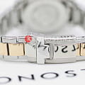 Яркий стиль и функциональность этих часов придутся по душе активной девушке. Кварцевый механизм с высокой точностью. Минеральное стеклоМинеральное стеклоМинеральное стекло представляет собой искусственно выращенный минерал кварца. Такое стекло отличается особой устойчивостью к повреждениям и царапинам. Уступает по некоторым качествам сапфировому стеклу. устойчивое к появлению царапин, обладающее высокой прозрачностью. Циферблат выполнен по технологии Sunray (солнечные лучи). Класс водозащиты: 100 метров, позволит плавать, нырять и заниматься другими водными видами спорта. Стрелки с люминесцентным покрытиемЛюминесцентное покрытиеПозволяет считывать показания времени в темноте. Производители наносят на стрелки, часовые индексы, безель или поверхность циферблата светонакопительный состав, дающий холодное свечение.. Корпус часов изготовлен из нержавеющей стали. БезельБезельВнешний ободок, закрепляющий стекло. В спортивных часах так называется поворотное кольцо с делениями на циферблате, выполняет роль таймера – замеряет отрезки времени на шкале. Неподвижный безель – элемент декора. Однонаправленно вращающийся безель на дайверских часах позволяет фиксировать моменты погружения и выныривания на поверхность. c PVD-покрытиемPVDУльтратонкое покрытие наносится в технике вакуумного напыления, сочетает в себе нитрид титана особой прочности со слоем золота или оксида хрома. Несёт в себе декоративную или защитную функцию.. Браслет с частичным PVD-покрытиемPVDУльтратонкое покрытие наносится в технике вакуумного напыления, сочетает в себе нитрид титана особой прочности со слоем золота или оксида хрома. Несёт в себе декоративную или защитную функцию. и с раскладной застёжкойРаскладная застёжкаТакой тип застёжки используется только на браслетах из металла. Она никогда не раскрывается полностью, происходит разделение на 2 и более частей. Раскладывающая застёжка снизит вероятность потери часов к минимуму..