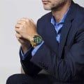 Эксклюзивный хронографХронографФункция позволяет измерять отрезки времени с особой точностью: часы, минуты, секунды. Верным признаком хронографа является наличие на циферблате 3 дополнительных окошек-счётчиков. с секундомеромСекундомерСекундоме́р — прибор, способный измерять интервалы времени с точностью до долей секунды. и тахиметромТахиметрРазмеченная шкала, располагается на ободке или безеле часов. Тахиметр позволяет рассчитать скорость на определённом участке пути, расстояние измеряется в километрах или милях., отличающийся продуманным дизайном и отделкой, придется по вкусу мужчинам, ценящим идеальное соотношение цены и качества. Минеральное стеклоМинеральное стеклоМинеральное стекло представляет собой искусственно выращенный минерал кварца. Такое стекло отличается особой устойчивостью к повреждениям и царапинам. Уступает по некоторым качествам сапфировому стеклу. устойчивое к появлению царапин, обладающее высокой прозрачностью. Циферблат с люминесцентным покрытиемЛюминесцентное покрытиеПозволяет считывать показания времени в темноте. Производители наносят на стрелки, часовые индексы, безель или поверхность циферблата светонакопительный состав, дающий холодное свечение. стрелок и меток. Корпус и браслет из стали с PVDPVDУльтратонкое покрытие наносится в технике вакуумного напыления, сочетает в себе нитрид титана особой прочности со слоем золота или оксида хрома. Несёт в себе декоративную или защитную функцию. покрытием. Класс водозащиты: 100 метров, позволит плавать, нырять и заниматься другими водными видами спорта. Браслет с раскладной застёжкойРаскладная застёжкаТакой тип застёжки используется только на браслетах из металла. Она никогда не раскрывается полностью, происходит разделение на 2 и более частей. Раскладывающая застёжка снизит вероятность потери часов к минимуму..