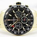 Эксклюзивный хронографХронографФункция позволяет измерять отрезки времени с особой точностью: часы, минуты, секунды. Верным признаком хронографа является наличие на циферблате 3 дополнительных окошек-счётчиков. с секундомеромСекундомерСекундоме́р — прибор, способный измерять интервалы времени с точностью до долей секунды. и тахиметромТахиметрРазмеченная шкала, располагается на ободке или безеле часов. Тахиметр позволяет рассчитать скорость на определённом участке пути, расстояние измеряется в километрах или милях., отличающийся продуманным дизайном и отделкой, придется по вкусу мужчинам, ценящим идеальное соотношение цены и качества. Минеральное стеклоМинеральное стеклоМинеральное стекло представляет собой искусственно выращенный минерал кварца. Такое стекло отличается особой устойчивостью к повреждениям и царапинам. Уступает по некоторым качествам сапфировому стеклу. устойчивое к появлению царапин, обладающее высокой прозрачностью. Циферблат с люминесцентным покрытиемЛюминесцентное покрытиеПозволяет считывать показания времени в темноте. Производители наносят на стрелки, часовые индексы, безель или поверхность циферблата светонакопительный состав, дающий холодное свечение. стрелок и меток. Корпус и браслет из стали с PVDPVDУльтратонкое покрытие наносится в технике вакуумного напыления, сочетает в себе нитрид титана особой прочности со слоем золота или оксида хрома. Несёт в себе декоративную или защитную функцию. покрытием. Класс водозащиты: 100 метров, позволит защитить корпус от случайных брызг или капель дождя. Браслет с раскладной застёжкойРаскладная застёжкаТакой тип застёжки используется только на браслетах из металла. Она никогда не раскрывается полностью, происходит разделение на 2 и более частей. Раскладывающая застёжка снизит вероятность потери часов к минимуму..