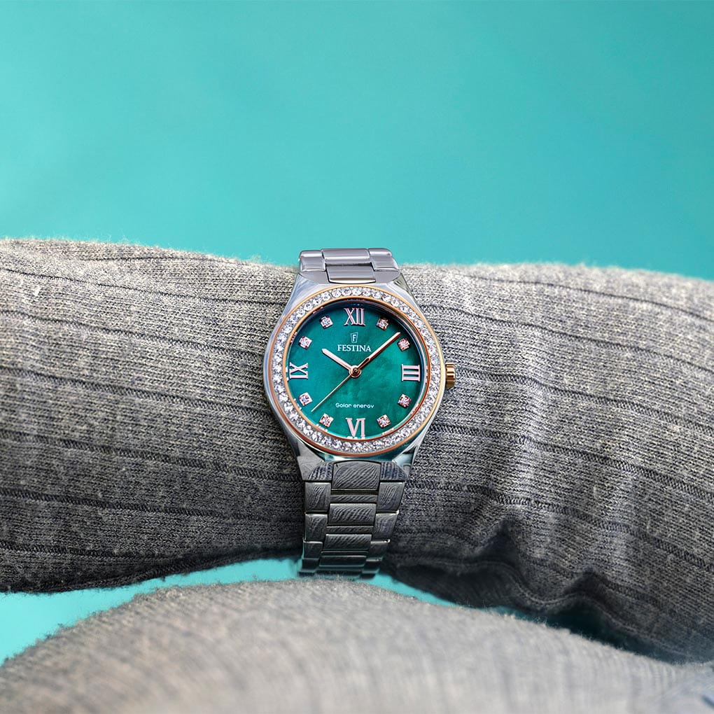 Яркий стиль и функциональность этих часов придутся по душе активной девушке. Кварцевый механизм с высокой точностью. Минеральное стеклоМинеральное стеклоМинеральное стекло представляет собой искусственно выращенный минерал кварца. Такое стекло отличается особой устойчивостью к повреждениям и царапинам. Уступает по некоторым качествам сапфировому стеклу. устойчивое к появлению царапин, обладающее высокой прозрачностью. Класс водозащиты: 50 метров, позволит защитить корпус от случайных брызг или капель дождя. Корпус часов изготовлен из нержавеющей стали 316L с частичным PVDPVDУльтратонкое покрытие наносится в технике вакуумного напыления, сочетает в себе нитрид титана особой прочности со слоем золота или оксида хрома. Несёт в себе декоративную или защитную функцию. покрытием. БезельБезельВнешний ободок, закрепляющий стекло. В спортивных часах так называется поворотное кольцо с делениями на циферблате, выполняет роль таймера – замеряет отрезки времени на шкале. Неподвижный безель – элемент декора. Однонаправленно вращающийся безель на дайверских часах позволяет фиксировать моменты погружения и выныривания на поверхность. украшен цирконами. Браслет с раскладной застёжкойРаскладная застёжкаТакой тип застёжки используется только на браслетах из металла. Она никогда не раскрывается полностью, происходит разделение на 2 и более частей. Раскладывающая застёжка снизит вероятность потери часов к минимуму..
