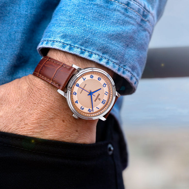 Кварцевый механизм с солнечной батарей. Минеральное стеклоМинеральное стеклоМинеральное стекло представляет собой искусственно выращенный минерал кварца. Такое стекло отличается особой устойчивостью к повреждениям и царапинам. Уступает по некоторым качествам сапфировому стеклу. устойчивое к появлению царапин, обладающее высокой прозрачностью. Циферблат декорирован узором. Класс водозащиты: 50 метров, позволит защитить корпус от случайных брызг или капель дождя. Корпус часов изготовлен из нержавеющей стали. Натуральной кожаный ремешок с классической застежкой, ширина браслета 20мм. Рифленая заводная головка.