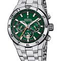 Часы-хронографХронографФункция позволяет измерять отрезки времени с особой точностью: часы, минуты, секунды. Верным признаком хронографа является наличие на циферблате 3 дополнительных окошек-счётчиков.. Кварцевый механизм с высокой точностью. Минеральное стеклоМинеральное стеклоМинеральное стекло представляет собой искусственно выращенный минерал кварца. Такое стекло отличается особой устойчивостью к повреждениям и царапинам. Уступает по некоторым качествам сапфировому стеклу. устойчивое к появлению царапин, обладающее высокой прозрачностью. Класс водозащиты: 100 метров, позволит плавать, нырять и заниматься другими водными видами спорта. Безель c PVD-покрытиемPVDУльтратонкое покрытие наносится в технике вакуумного напыления, сочетает в себе нитрид титана особой прочности со слоем золота или оксида хрома. Несёт в себе декоративную или защитную функцию.. Стрелки и метки с люминесцентным покрытиемЛюминесцентное покрытиеПозволяет считывать показания времени в темноте. Производители наносят на стрелки, часовые индексы, безель или поверхность циферблата светонакопительный состав, дающий холодное свечение.. Корпус часов изготовлен из нержавеющей стали. Браслет с раскладной застёжкойРаскладная застёжкаТакой тип застёжки используется только на браслетах из металла. Она никогда не раскрывается полностью, происходит разделение на 2 и более частей. Раскладывающая застёжка снизит вероятность потери часов к минимуму..