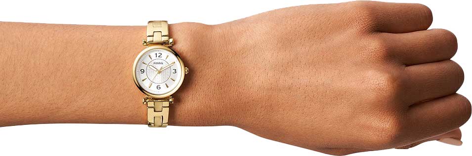 Женские американские часы Fossil Carlie ES5203, кварцевый механизм с высокой точностью. Класс водозащиты: 50 метров, позволит защитить корпус от случайных брызг или капель дождя. Корпус часов изготовлен из стали, цвета.