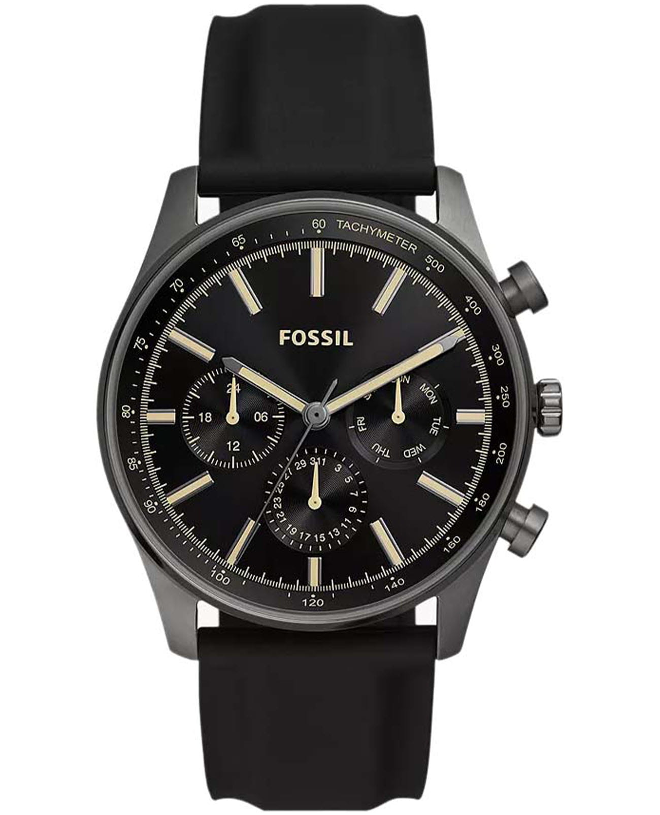 Часы c хронографомХронографФункция позволяет измерять отрезки времени с особой точностью: часы, минуты, секунды. Верным признаком хронографа является наличие на циферблате 3 дополнительных окошек-счётчиков. Fossil Bannon BQ2746, кварцевый механизм с высокой точностью. Минеральное стеклоМинеральное стеклоМинеральное стекло представляет собой искусственно выращенный минерал кварца. Такое стекло отличается особой устойчивостью к повреждениям и царапинам. Уступает по некоторым качествам сапфировому стеклу. устойчивое к мелким механическим повреждениям. Класс водозащиты: 50 метров, позволит защитить корпус от случайных брызг или капель дождя. Корпус часов изготовлен из стали с IP-покрытиемIP-покрытиеМетод ионного напыления. Демонстрирует повышенную устойчивость к истиранию, окислению и химическим веществам. Под воздействием высокого давления и температуры около 1500°C молекулы металла надёжно соединяются с частицами корпуса часов.. Стрелки и метки с люминесцентным покрытиемЛюминесцентное покрытиеПозволяет считывать показания времени в темноте. Производители наносят на стрелки, часовые индексы, безель или поверхность циферблата светонакопительный состав, дающий холодное свечение.. Функции даты, дня недели и 24 часового формата времени вынесены на отдельные циферблаты.ТахиметрТахиметрРазмеченная шкала, располагается на ободке или безеле часов. Тахиметр позволяет рассчитать скорость на определённом участке пути, расстояние измеряется в километрах или милях.. Силиконовый ремешок на стандартной застёжке.