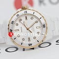 Женские наручные часы Fossil на браслете Fossil FB-01 CE1107, кварцевый механизм с высокой точностью. Класс водозащиты: 100 метров, позволит плавать, нырять и заниматься другими водными видами спорта. Стрелки с люминесцентным покрытиемЛюминесцентное покрытиеПозволяет считывать показания времени в темноте. Производители наносят на стрелки, часовые индексы, безель или поверхность циферблата светонакопительный состав, дающий холодное свечение.. Циферблат украшен кристаллами. Корпус часов изготовлен из стали. Керамический браслет с раскладной застёжкойРаскладная застёжкаТакой тип застёжки используется только на браслетах из металла. Она никогда не раскрывается полностью, происходит разделение на 2 и более частей. Раскладывающая застёжка снизит вероятность потери часов к минимуму..