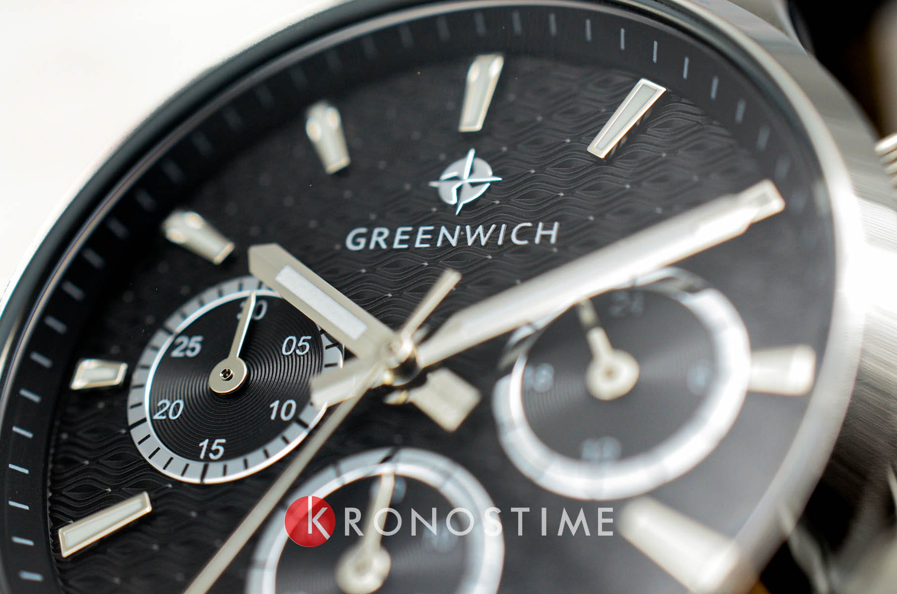 Женские кварцевые часы Greenwich из коллекции Mermaid — это сочетание элегантности и функциональности. Корпус диаметром 35 мм выполнен из нержавеющей стали. Циферблат чёрного цвета оформлен с эффектом гильоше в виде волнообразных линий, придающим ему объём и глубину. На циферблате расположены субциферблаты хронографа (секундомер на 60 секунд и 30 минут) и индикатор 24-часового формата. Все индикаторы выделены рамками с зеркальной полировкой. Стрелки и метки с люминесцентным покрытиемЛюминесцентное покрытиеПозволяет считывать показания времени в темноте. Производители наносят на стрелки, часовые индексы, безель или поверхность циферблата светонакопительный состав, дающий холодное свечение., обеспечивающим хорошую читаемость в темноте. Циферблат защищён минеральным стекломМинеральное стеклоМинеральное стекло представляет собой искусственно выращенный минерал кварца. Такое стекло отличается особой устойчивостью к повреждениям и царапинам. Уступает по некоторым качествам сапфировому стеклу.. Механизм — кварцевый калибр Miyota с функцией хронографа. Часы оснащены кожаным ремешком чёрного цвета с классической пряжкой из нержавеющей стали. Водонепроницаемость 100 м позволяет использовать часы для плавания и повседневного ношения. Гарантия — 24 месяца. Идеальный выбор для тех, кто ценит стиль, точность и надёжность.