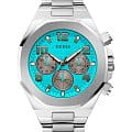 Мужские наручные часы с минеральным стекломМинеральное стеклоМинеральное стекло представляет собой искусственно выращенный минерал кварца. Такое стекло отличается особой устойчивостью к повреждениям и царапинам. Уступает по некоторым качествам сапфировому стеклу. Guess Empire GW0489G3, кварцевый механизм с высокой точностью. Класс водозащиты: 50 метров, позволит защитить корпус от случайных брызг или капель дождя. Корпус часов изготовлен из стали. Стальной браслет на раскладной застёжкеРаскладная застёжкаТакой тип застёжки используется только на браслетах из металла. Она никогда не раскрывается полностью, происходит разделение на 2 и более частей. Раскладывающая застёжка снизит вероятность потери часов к минимуму.. Стрелки с люминесцентным покрытиемЛюминесцентное покрытиеПозволяет считывать показания времени в темноте. Производители наносят на стрелки, часовые индексы, безель или поверхность циферблата светонакопительный состав, дающий холодное свечение.. 12-ти и 24-х часовой формат времени, дата и день недели вынесены на отдельные циферблаты. Метки в виде штрихов и арабских цифр. Рифленая заводная головка с защитой.