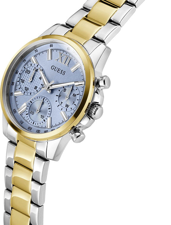 Элегантные женские наручные часы Guess GW0933L3 сочетают в себе стиль и функциональность. Эти часы оснащены точным кварцевым механизмом, что гарантирует надежность и долговечность. Корпус часов выполнен из прочной нержавеющей стали серебристого цвета, диаметром 36 мм. Неподвижный безельБезельВнешний ободок, закрепляющий стекло. В спортивных часах так называется поворотное кольцо с делениями на циферблате, выполняет роль таймера – замеряет отрезки времени на шкале. Неподвижный безель – элемент декора. Однонаправленно вращающийся безель на дайверских часах позволяет фиксировать моменты погружения и выныривания на поверхность. с PVD-покрытиемPVDУльтратонкое покрытие наносится в технике вакуумного напыления, сочетает в себе нитрид титана особой прочности со слоем золота или оксида хрома. Несёт в себе декоративную или защитную функцию. золотистого цвета придает роскошный вид. Циферблат Циферблат Циферблат дополнен тахиметромТахиметрРазмеченная шкала, располагается на ободке или безеле часов. Тахиметр позволяет рассчитать скорость на определённом участке пути, расстояние измеряется в километрах или милях.. Часы оснащены стальным браслетом с частичным PVD-покрытиемPVDУльтратонкое покрытие наносится в технике вакуумного напыления, сочетает в себе нитрид титана особой прочности со слоем золота или оксида хрома. Несёт в себе декоративную или защитную функцию. на раскладной застёжкеРаскладная застёжкаТакой тип застёжки используется только на браслетах из металла. Она никогда не раскрывается полностью, происходит разделение на 2 и более частей. Раскладывающая застёжка снизит вероятность потери часов к минимуму., которая обеспечивает комфортное прилегание к запястью и надежную фиксацию. Минеральное стеклоМинеральное стеклоМинеральное стекло представляет собой искусственно выращенный минерал кварца. Такое стекло отличается особой устойчивостью к повреждениям и царапинам. Уступает по некоторым качествам сапфировому стеклу. защищает циферблат от царапин и повреждений, сохраняя его безупречный вид. 12-ти и 24-х часовой формат. Рифленая заводная головка с защитой. Водозащита 30WR гарантирует защиту от случайных брызг и дождя, что делает эти часы практичным аксессуаром для повседневной жизни.  Люминесцентное покрытиеЛюминесцентное покрытиеПозволяет считывать показания времени в темноте. Производители наносят на стрелки, часовые индексы, безель или поверхность циферблата светонакопительный состав, дающий холодное свечение. на стрелках и метках обеспечивает отличную видимость в темноте. Guess – это не просто аксессуар, это заявление о вашем безупречном вкусе и стремлении к совершенству.
