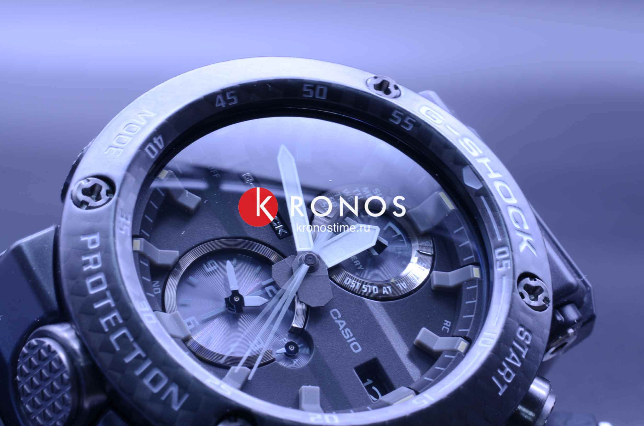 Внушительный аксессуар стильно смотрится на широком запястье, гармонично смотрятся крупные детали и общее тёмное исполнение. Задняя крышка здесь отсутствует, ударопрочный корпусУдаропрочный корпусМеханизм заключён в корпус, выполненный из современных материалов, устойчивых к ударам, механическим повреждениям и падению с высоты: инновационный пластик, карбон, нержавеющая сталь, титан. сделан из монолитного углеродного монокока, вдохновлённого конструкцией ранних самолётов. Он состоит из 52 карбоновых слоёв, уникальная текстура просматривается на боковых частях безеляБезельВнешний ободок, закрепляющий стекло. В спортивных часах так называется поворотное кольцо с делениями на циферблате, выполняет роль таймера – замеряет отрезки времени на шкале. Неподвижный безель – элемент декора. Однонаправленно вращающийся безель на дайверских часах позволяет фиксировать моменты погружения и выныривания на поверхность. – с успехом реализована технология Carbon Core GuardCarbon Core Guard Новейшая структура корпуса, разработанная Casio. Полиуретановая пластина дополнительно усилена карбоновыми вставками, что придаёт специальную защиту от механических повреждений. Карбон отличается лёгкостью и прочностью.. Полимерный ремешок тоже имеет усиление карбоновыми волокнами. Наручные часы обладают полезным функционалом: BluetoothBluetoothСовременная технология, позволяющая синхронизировать часы с телефоном и переносить данные. Часы с Bluetooth расширяют возможности вашего смартфона и делают его использование ещё более удобным., будильник, мировое времяМировое время Полезное часовое усложнение, отображающее время в основных городах и известных областях по всему миру, оно связано с часовыми поясами, удобно для путешественников и бизнесменов. , таймер, приём радиосигнала, питание от солнечной батареи . Сапфировое стекло с антибликовой обработкой. Яркая люминесцентная подсветкаЛюминесцентное покрытиеПозволяет считывать показания времени в темноте. Производители наносят на стрелки, часовые индексы, безель или поверхность циферблата светонакопительный состав, дающий холодное свечение.. Габариты: 50,1 x 46,4 x 16,9 мм.