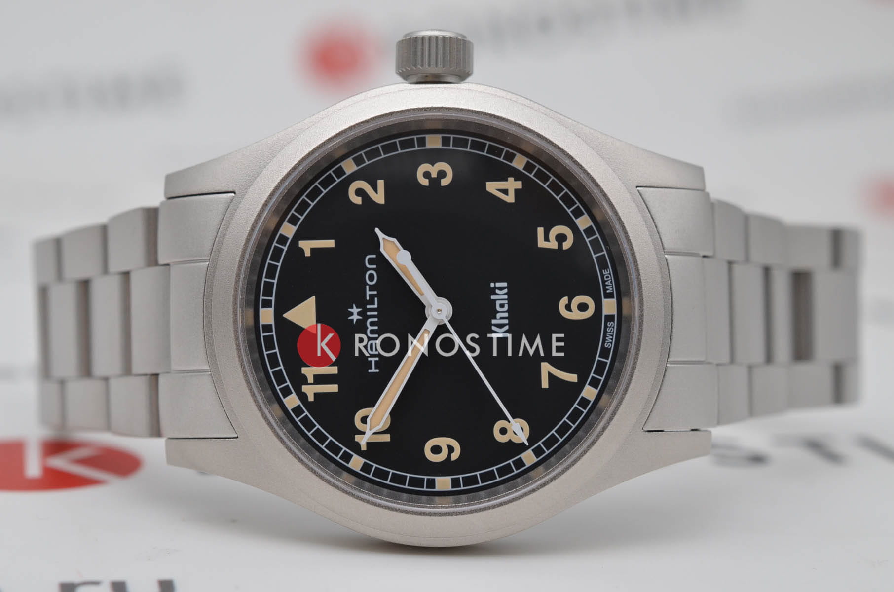 Hamilton Khaki Field Quartz H69401131 — компактные и универсальные часы в классическом военном стиле, с акцентом на надёжность и практичность. Корпус диаметром 38 мм выполнен из нержавеющей стали с сатинированной поверхностью. Он лёгкий, удобный и идеально подходит для запястий любого размера. Циферблат защищён сапфировым стекломСапфировое стеклоПрочный и надёжный материал из кристалла сапфира синтетического происхождения, характеризующийся особой твёрдостью и устойчивостью к царапинам и повреждениям. с антибликовым покрытиемАнтибликовое покрытиеСлой оксида металла в 0,13-0,3 микрон, благодаря которому стекло часов не бликует и не отражает свет. Антибликовое покрытие уменьшает отражение света в 10 раз, обеспечивая отличную читаемость показателей циферблата., устойчивым к царапинам и бликам. Циферблат оформлен в классическом армейском стиле: крупные арабские цифры, 24-часовая шкала по внутреннему кругу, стрелки и метки с люминесцентным покрытиемЛюминесцентное покрытиеПозволяет считывать показания времени в темноте. Производители наносят на стрелки, часовые индексы, безель или поверхность циферблата светонакопительный состав, дающий холодное свечение. для удобного считывания в темноте. Внутри установлен швейцарский кварцевый калибр ETA F05.105mh2 с функцией EOL-индикацииEOLПредставляет собой систему, уведомляющую владельца часов о необходимости замены элемента питания. За 2 недели до полного разряда батарейки секундная стрелка перестаёт ходить чётко и начинает перепрыгивать на 3-4 деления. — предупреждением о скором разряде батареи. Модель укомплектована браслетом из нержавеющей стали с раскладной застёжкойРаскладная застёжкаТакой тип застёжки используется только на браслетах из металла. Она никогда не раскрывается полностью, происходит разделение на 2 и более частей. Раскладывающая застёжка снизит вероятность потери часов к минимуму., обеспечивающей надёжную посадку. Водонепроницаемость 50 метров делает часы устойчивыми к брызгам и дождю, идеально подходящими для повседневного ношения. Khaki Field Quartz — надёжный выбор для тех, кто ценит простоту, точность и долговечность.