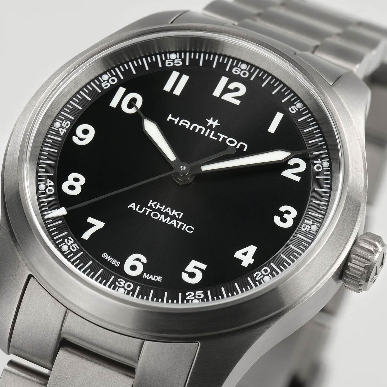 Мужские швейцарские часы Hamilton Khaki Field Titanium Auto 36mm Limited Edition Engineered Garments H70235130 представляют эксклюзивную коллаборацию с японским брендом Engineered Garments, выпущенную лимитированной серией в 1999 экземпляров в честь даты основания бренда-партнёра. Модель выполнена в облегчённом титановом корпусе диаметром 36 мм и толщиной 10.8 мм с матовой отделкой, сочетающейся с титановым браслетом и раскладывающейся застёжкой (16 мм). Чёрный циферблат с треугольными часовыми метками и люминесцентным покрытиемЛюминесцентное покрытиеПозволяет считывать показания времени в темноте. Производители наносят на стрелки, часовые индексы, безель или поверхность циферблата светонакопительный состав, дающий холодное свечение. Super-LumiNova обеспечивает превосходную видимость в темноте, дополнен сапфировым стекломСапфировое стеклоПрочный и надёжный материал из кристалла сапфира синтетического происхождения, характеризующийся особой твёрдостью и устойчивостью к царапинам и повреждениям. с антибликовым покрытием для повышенной прочности и чёткости показаний. Автоматический механизм Hamilton H-10 с инновационной пружиной баланса Nivachron™Nivachron™Специально разработанный инновационный сплав Nivachron™ повышает устойчивость часов к воздействию магнитных полей. гарантирует точность хода, устойчивость к магнитным полям и впечатляющий запас хода 80 часов. Часы оснащены прозрачной задней крышкой, демонстрирующей работу калибра, и обладают водонепроницаемостью до 10 бар (100 метров), что делает их надёжным спутником в экстремальных условиях.