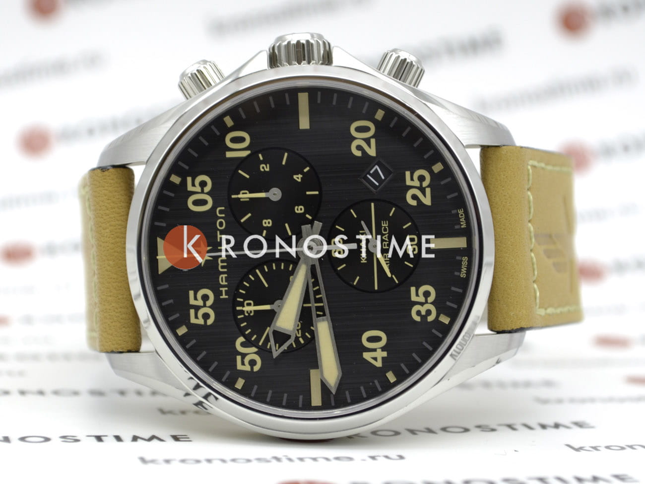 Швейцарские мужские часы Hamilton Khaki Aviation Pilot Chrono H76722531 с хронографом