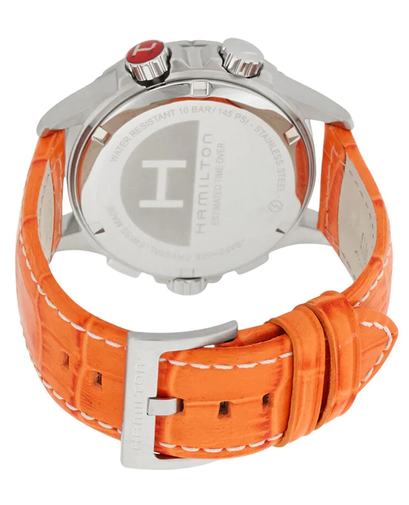 Мужские часы-хронографХронографФункция позволяет измерять отрезки времени с особой точностью: часы, минуты, секунды. Верным признаком хронографа является наличие на циферблате 3 дополнительных окошек-счётчиков. Hamilton Khaki Aviation ETO Chrono Quartz H77612933 с надёжным кварцевым механизмом. Корпус часов изготовлен из нержавеющей стали. Кожаный ремешок на стандартной застёжке. Сапфировое стеклоСапфировое стеклоПрочный и надёжный материал из кристалла сапфира синтетического происхождения, характеризующийся особой твёрдостью и устойчивостью к царапинам и повреждениям. с антибликовым покрытием. Второй часовой поясВторой часовой поясФункция, позволяющая отображать время двух часовых поясов одновременно., вычисление поправки на ветер, окошко даты находится в положении 6 часов. Стрелки и метки с люминесцентным покрытиемЛюминесцентное покрытиеПозволяет считывать показания времени в темноте. Производители наносят на стрелки, часовые индексы, безель или поверхность циферблата светонакопительный состав, дающий холодное свечение.. Уровень влагозащиты: 100 метров, позволит плавать, нырять и заниматься другими водными видами спорта.