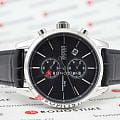 Мужские элегантные часы Hugo Boss Jet HB1513279 сочетают современный дизайн и функциональность в 42-мм корпусе из нержавеющей стали серебристого цвета. Модель оснащена кварцевым механизмом, обеспечивающим точность хода, и функциями хронографаХронографФункция позволяет измерять отрезки времени с особой точностью: часы, минуты, секунды. Верным признаком хронографа является наличие на циферблате 3 дополнительных окошек-счётчиков. с cекундомеромСекундомерСекундоме́р — прибор, способный измерять интервалы времени с точностью до долей секунды., а также индикацией даты в положении 4 часа. Черный стильный циферблат защищен устойчивым к царапинам минеральным стекломМинеральное стеклоМинеральное стекло представляет собой искусственно выращенный минерал кварца. Такое стекло отличается особой устойчивостью к повреждениям и царапинам. Уступает по некоторым качествам сапфировому стеклу., а стильный кожаный черный ремень дополнен надежной и удобной стандартной застежкой. Часы обладают водонепроницаемостью WR50 (5 атм), что защищает часы от брызг или дождя. Эта модель станет идеальным аксессуаром для ежедневного использования и особых мероприятий, подчеркивая вашу индивидуальность и стиль.