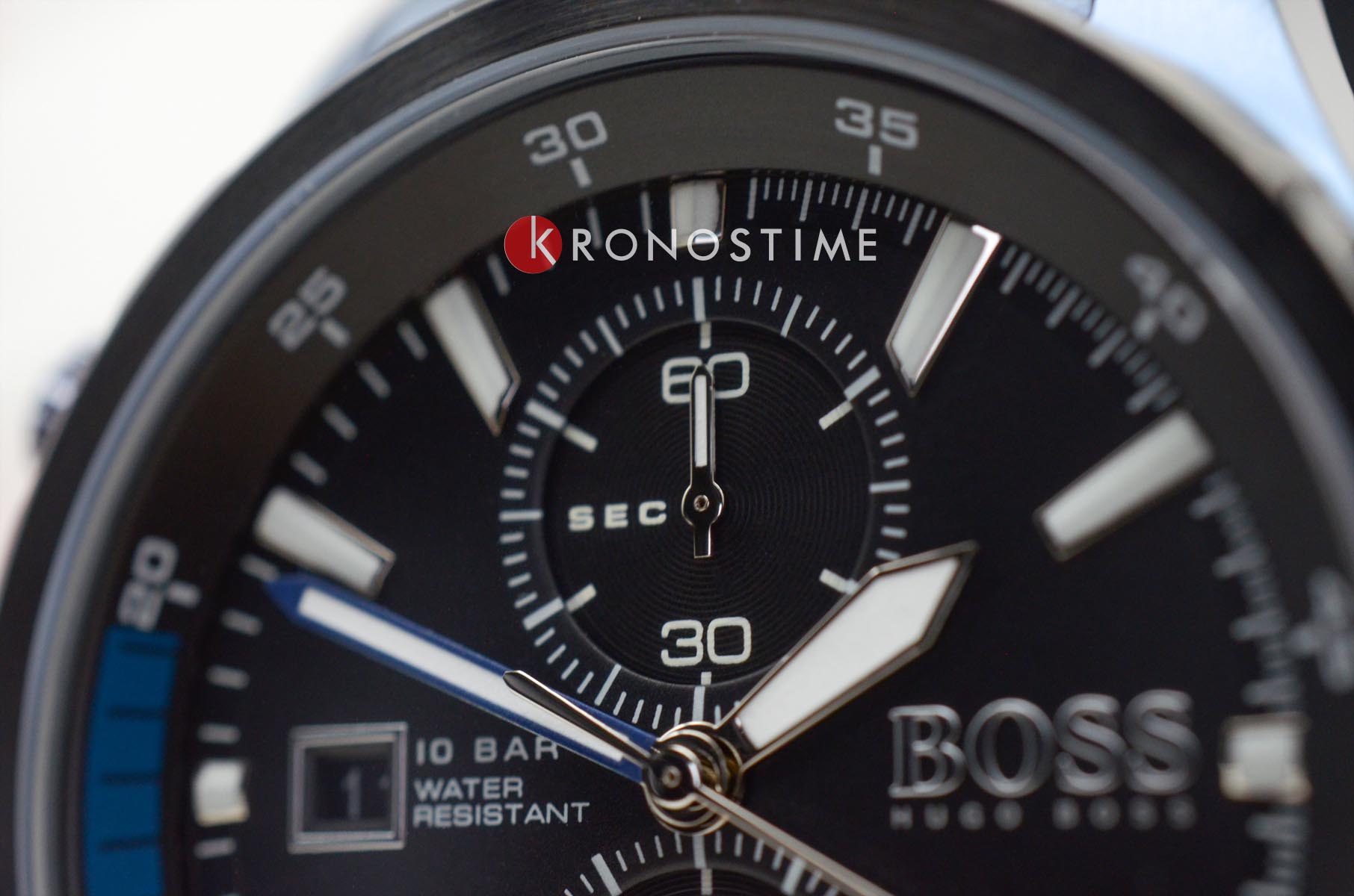 Мужские часы Hugo Boss Globetrotter HB1513824 представлены в круглом 46-мм корпусе из нержавеющей стали с синим IP-покрытиемIP-покрытиеМетод ионного напыления. Демонстрирует повышенную устойчивость к истиранию, окислению и химическим веществам. Под воздействием высокого давления и температуры около 1500°C молекулы металла надёжно соединяются с частицами корпуса часов. толщиной 11–12 мм. Оснащены кварцевым механизмом с функцией хронографаХронографФункция позволяет измерять отрезки времени с особой точностью: часы, минуты, секунды. Верным признаком хронографа является наличие на циферблате 3 дополнительных окошек-счётчиков., секундомеромСекундомерСекундоме́р — прибор, способный измерять интервалы времени с точностью до долей секунды. и тахиметрической шкалой на внутреннем безелеБезельВнешний ободок, закрепляющий стекло. В спортивных часах так называется поворотное кольцо с делениями на циферблате, выполняет роль таймера – замеряет отрезки времени на шкале. Неподвижный безель – элемент декора. Однонаправленно вращающийся безель на дайверских часах позволяет фиксировать моменты погружения и выныривания на поверхность.. Черный циферблат с окошком даты защищен устойчивым к царапинам минеральным стекломМинеральное стеклоМинеральное стекло представляет собой искусственно выращенный минерал кварца. Такое стекло отличается особой устойчивостью к повреждениям и царапинам. Уступает по некоторым качествам сапфировому стеклу.. Стальной браслет с IP-покрытиемIP-покрытиеМетод ионного напыления. Демонстрирует повышенную устойчивость к истиранию, окислению и химическим веществам. Под воздействием высокого давления и температуры около 1500°C молекулы металла надёжно соединяются с частицами корпуса часов. дополнен раскладной застёжкойРаскладная застёжкаТакой тип застёжки используется только на браслетах из металла. Она никогда не раскрывается полностью, происходит разделение на 2 и более частей. Раскладывающая застёжка снизит вероятность потери часов к минимуму.. Стрелки с люминесцентным покрытиемЛюминесцентное покрытиеПозволяет считывать показания времени в темноте. Производители наносят на стрелки, часовые индексы, безель или поверхность циферблата светонакопительный состав, дающий холодное свечение. обеспечивают видимость в темноте. Водонепроницаемость 100 метров (10 ATM) позволяет использовать часы для плавания.