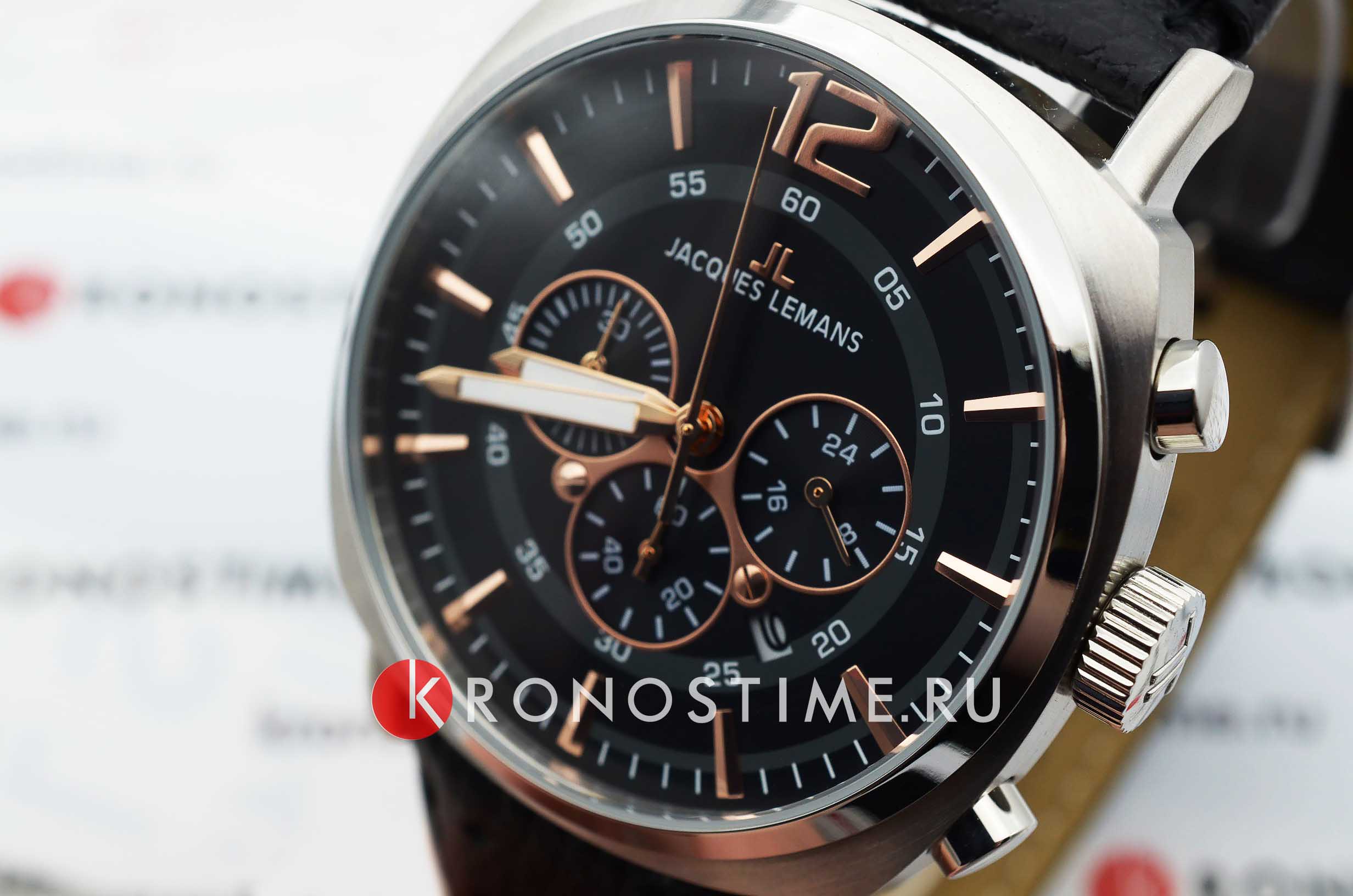 Наручные часы-хронографХронографФункция позволяет измерять отрезки времени с особой точностью: часы, минуты, секунды. Верным признаком хронографа является наличие на циферблате 3 дополнительных окошек-счётчиков. Jacques Lemans с функциями секундомераСекундомерСекундоме́р — прибор, способный измерять интервалы времени с точностью до долей секунды., 24-х часовым индикатором и датой призваны ставить на первое место индивидуальный стиль владельца, классическая элегантность придётся по вкусу каждому.