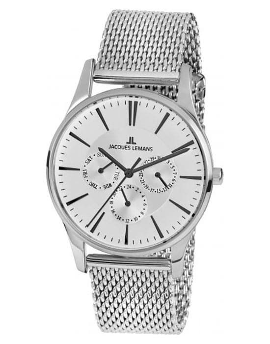 Наручные часы Jacques Lemans с календарем (число, день недели), 12/24 часовым форматом времени, призваны ставить на первое место индивидуальный стиль владельца, классическая элегантность придётся по вкусу каждому. Брендовые часы привлекают минималистичным дизайном, отсутствие вычурности и обилия декорирующих элементов делают модель лучшим решением для ежедневного применения. Аксессуар можно носить с деловыми костюмами и повседневной одеждой, он органично сочетается как с классическими брюками, так и с рваными джинсами. Это настоящее часовое искусство высокого качества, часы считаются актуальным вариантом на все времена и с идеальной точностью показывают время благодаря надёжному японскому механизму. Корпус серебристого цвета на классической раскладной застёжкеРаскладная застёжкаТакой тип застёжки используется только на браслетах из металла. Она никогда не раскрывается полностью, происходит разделение на 2 и более частей. Раскладывающая застёжка снизит вероятность потери часов к минимуму.