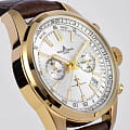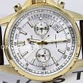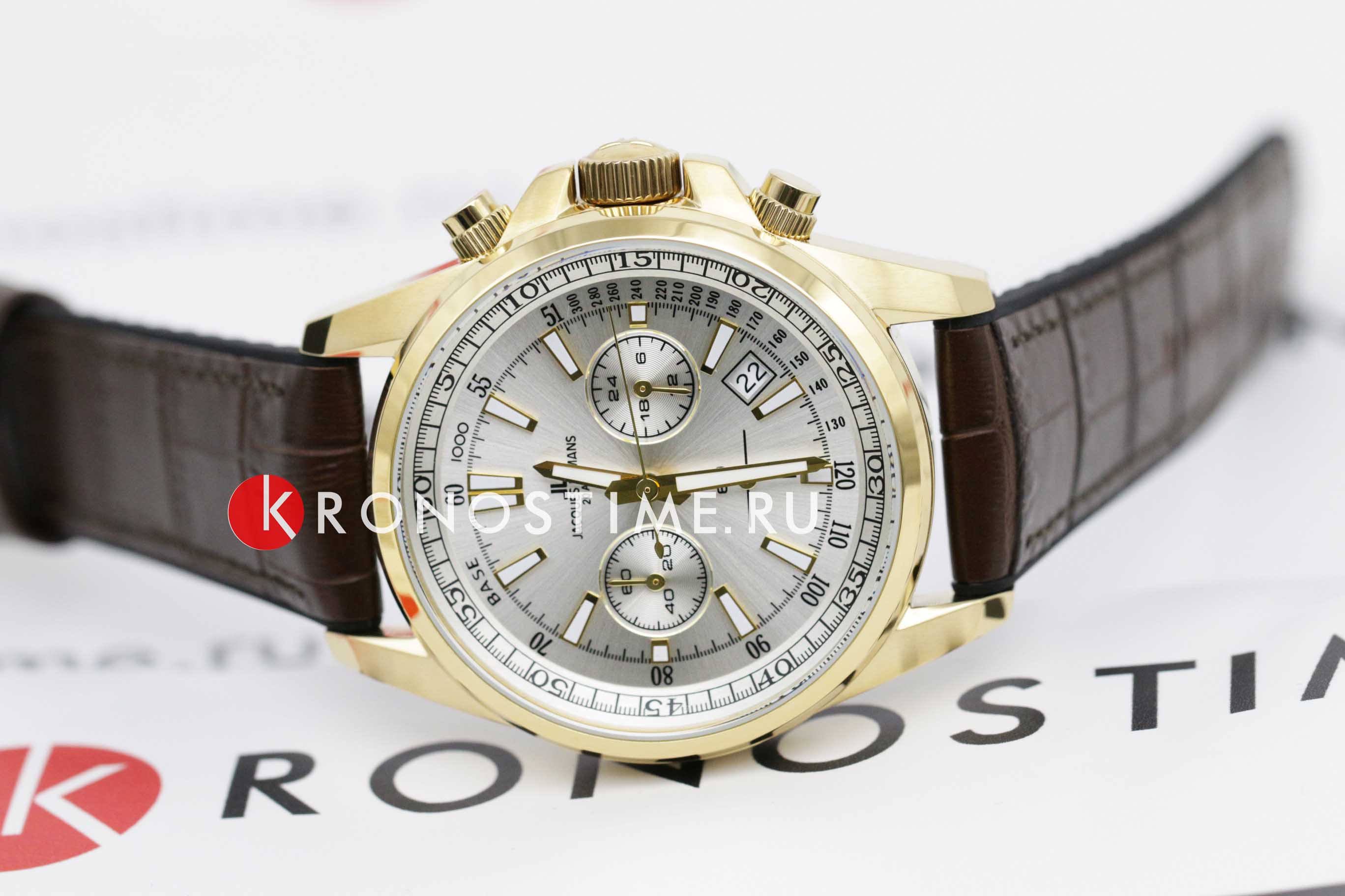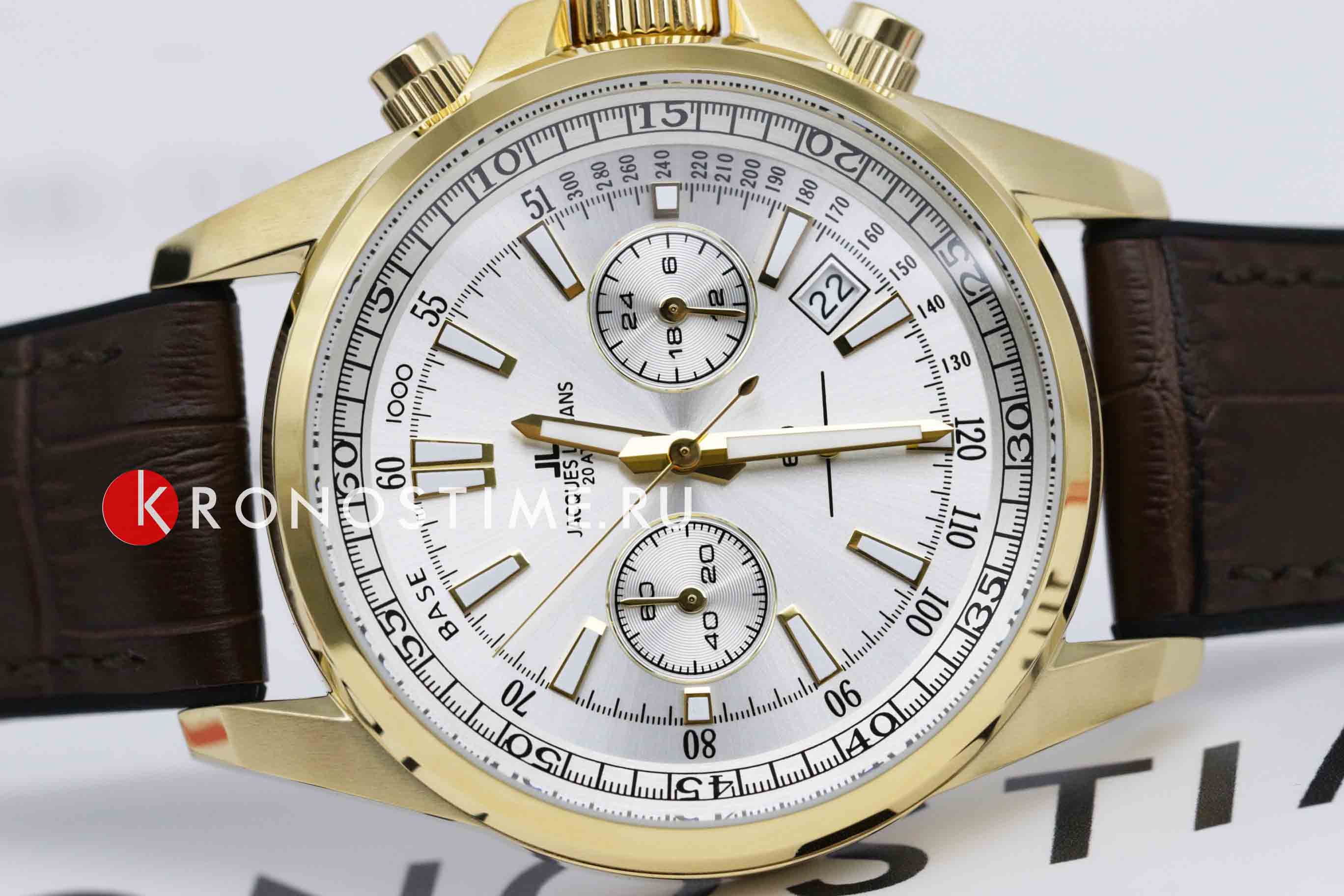 Мужские австрийские часы-хронографХронографФункция позволяет измерять отрезки времени с особой точностью: часы, минуты, секунды. Верным признаком хронографа является наличие на циферблате 3 дополнительных окошек-счётчиков. Jacques Lemans Sport 1-2117F, кварцевый механизм с высокой точностью. Класс водозащиты: 200 метров, позволит плавать, нырять и заниматься другими водными видами спорта. Корпус часов изготовлен из стали с PVD-покрытиемPVDУльтратонкое покрытие наносится в технике вакуумного напыления, сочетает в себе нитрид титана особой прочности со слоем золота или оксида хрома. Несёт в себе декоративную или защитную функцию. из желтого золота. Кнопки хронографаХронографФункция позволяет измерять отрезки времени с особой точностью: часы, минуты, секунды. Верным признаком хронографа является наличие на циферблате 3 дополнительных окошек-счётчиков. продуманного размера удобно использовать, а для рельефной заводной головки предусмотрена дополнительная защита. На белом циферблате с полировкой в виде солнечных лучей расположены крупные часовая и минутная стрелки и риски с люминесцентным покрытиемЛюминесцентное покрытиеПозволяет считывать показания времени в темноте. Производители наносят на стрелки, часовые индексы, безель или поверхность циферблата светонакопительный состав, дающий холодное свечение., которое помогает определить время даже в темноте. Хорошо читаются дополнительные индикаторы 24-х часов, счетчики минут и секунд, окошко даты. Предусмотрен тахиметрТахиметрРазмеченная шкала, располагается на ободке или безеле часов. Тахиметр позволяет рассчитать скорость на определённом участке пути, расстояние измеряется в километрах или милях.: его используют, например, для определения скорости. В часах установлено ударопрочное минеральное стеклоМинеральное стеклоМинеральное стекло представляет собой искусственно выращенный минерал кварца. Такое стекло отличается особой устойчивостью к повреждениям и царапинам. Уступает по некоторым качествам сапфировому стеклу. Crystex. Удобный ремешок темно-коричневого цвета из натуральной кожи (верхняя часть) и силикона (внутренняя часть) дополнен прошивкой, что позволяет продлить срок его службы.