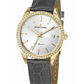 Женские австрийские часы Jacques Lemans La Passion 1-2085C, кварцевый механизм с высокой точностью. Класс водозащиты: 100 метров, позволит плавать, нырять и заниматься другими водными видами спорта. Корпус часов изготовлен из стали с IP-покрытиемIP-покрытиеМетод ионного напыления. Демонстрирует повышенную устойчивость к истиранию, окислению и химическим веществам. Под воздействием высокого давления и температуры около 1500°C молекулы металла надёжно соединяются с частицами корпуса часов.. БезельБезельВнешний ободок, закрепляющий стекло. В спортивных часах так называется поворотное кольцо с делениями на циферблате, выполняет роль таймера – замеряет отрезки времени на шкале. Неподвижный безель – элемент декора. Однонаправленно вращающийся безель на дайверских часах позволяет фиксировать моменты погружения и выныривания на поверхность. инкрустирован кристаллами с IP-покрытиемIP-покрытиеМетод ионного напыления. Демонстрирует повышенную устойчивость к истиранию, окислению и химическим веществам. Под воздействием высокого давления и температуры около 1500°C молекулы металла надёжно соединяются с частицами корпуса часов.. Минеральное стеклоМинеральное стеклоМинеральное стекло представляет собой искусственно выращенный минерал кварца. Такое стекло отличается особой устойчивостью к повреждениям и царапинам. Уступает по некоторым качествам сапфировому стеклу. устойчивое к мелким механическим повреждениям. Стрелки с люминесцентным покрытиемЛюминесцентное покрытиеПозволяет считывать показания времени в темноте. Производители наносят на стрелки, часовые индексы, безель или поверхность циферблата светонакопительный состав, дающий холодное свечение.. Кожаный ремешок на стандартной застёжке.