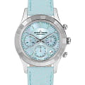 Женские часы Jacques Lemans Venice 1-2151C с минеральным стекломМинеральное стеклоМинеральное стекло представляет собой искусственно выращенный минерал кварца. Такое стекло отличается особой устойчивостью к повреждениям и царапинам. Уступает по некоторым качествам сапфировому стеклу., кварцевый механизм с высокой точностью. Часы- хронографХронографФункция позволяет измерять отрезки времени с особой точностью: часы, минуты, секунды. Верным признаком хронографа является наличие на циферблате 3 дополнительных окошек-счётчиков. с секундомеромСекундомерСекундоме́р — прибор, способный измерять интервалы времени с точностью до долей секунды.. БезельБезельВнешний ободок, закрепляющий стекло. В спортивных часах так называется поворотное кольцо с делениями на циферблате, выполняет роль таймера – замеряет отрезки времени на шкале. Неподвижный безель – элемент декора. Однонаправленно вращающийся безель на дайверских часах позволяет фиксировать моменты погружения и выныривания на поверхность. и корпус из нержавеющей стали. На циферблате расположены три дополнительных индикатора и окошко даты. Стрелки с люминесцентным покрытиемЛюминесцентное покрытиеПозволяет считывать показания времени в темноте. Производители наносят на стрелки, часовые индексы, безель или поверхность циферблата светонакопительный состав, дающий холодное свечение.. Каждая накладная риска украшена кристаллом Swarowski. Класс водозащиты: 50 метров, позволит защитить корпус от случайных брызг или капель дождя. Кожаный ремешок на стандартной застёжке.