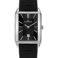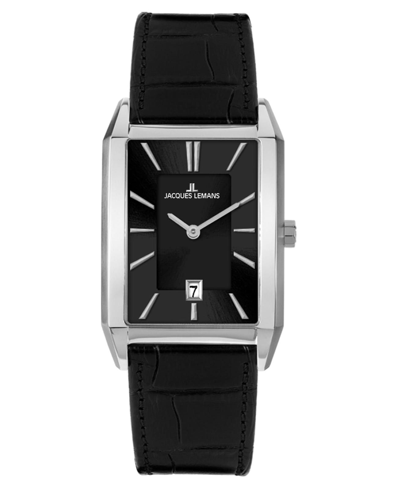 Часы Jacques Lemans 1-2160B из коллекции Classic Torino — элегантная мужская модель, сочетающая классический дизайн и современные технологии. Корпус размером 34 x 52 мм выполнен из нержавеющей стали. Чёрный двухуровневый циферблат с накладными часовыми метками и стрелками, обеспечивающими чёткое считывание времени, защищён минеральным стекломМинеральное стеклоМинеральное стекло представляет собой искусственно выращенный минерал кварца. Такое стекло отличается особой устойчивостью к повреждениям и царапинам. Уступает по некоторым качествам сапфировому стеклу. Crystex. Окошко даты расположено в позиции «6 часов».