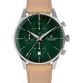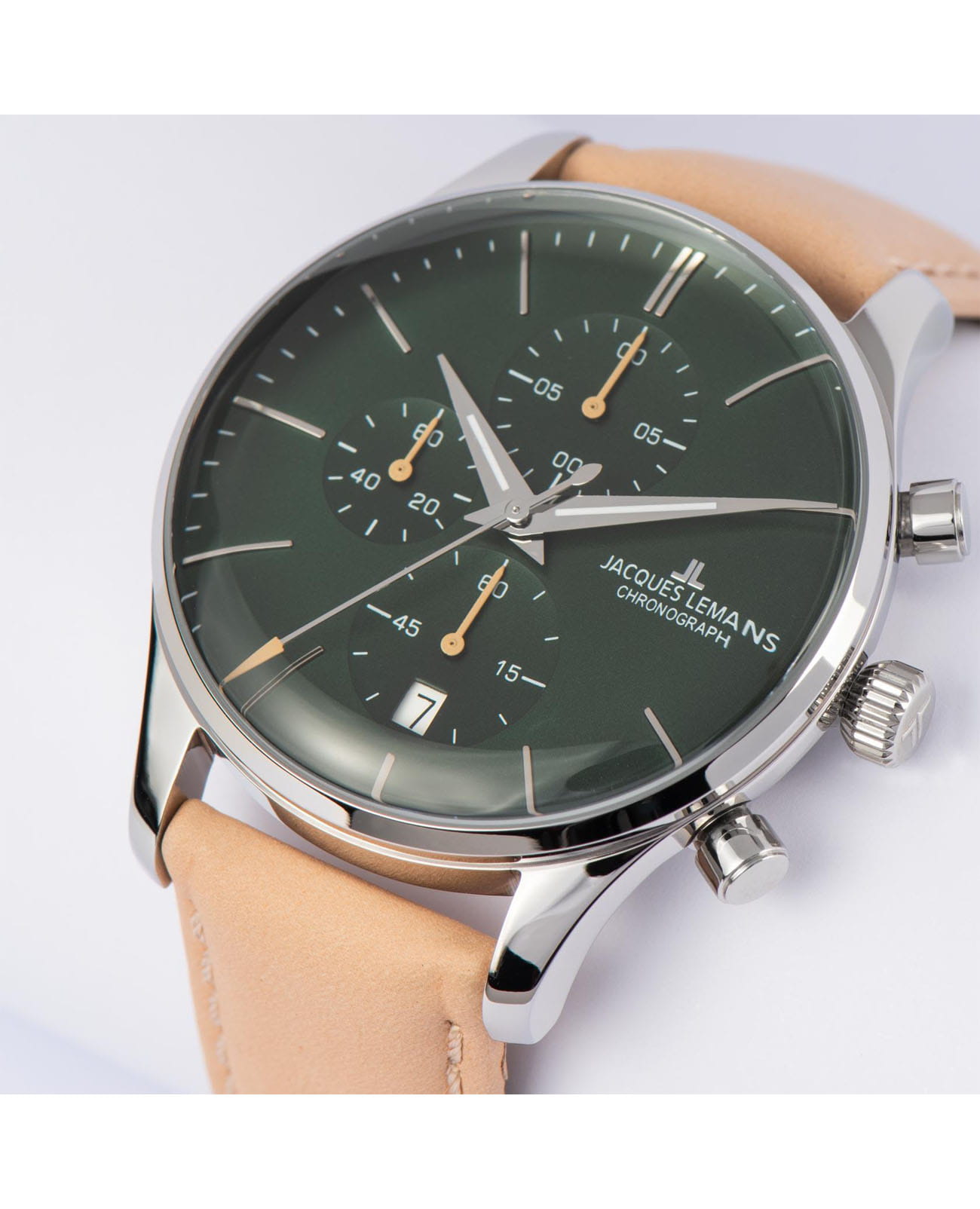 Мужские часы-хронографХронографФункция позволяет измерять отрезки времени с особой точностью: часы, минуты, секунды. Верным признаком хронографа является наличие на циферблате 3 дополнительных окошек-счётчиков. с секундомеромСекундомерСекундоме́р — прибор, способный измерять интервалы времени с точностью до долей секунды. Jacques Lemans Classic 1-2163D, кварцевый механизм с высокой точностью. Минеральное стеклоМинеральное стеклоМинеральное стекло представляет собой искусственно выращенный минерал кварца. Такое стекло отличается особой устойчивостью к повреждениям и царапинам. Уступает по некоторым качествам сапфировому стеклу. устойчивое к мелким механическим повреждениям. Корпус часов изготовлен из стали. Окошко даты находится в положении 6 часов. Стрелки с люминесцентным покрытиемЛюминесцентное покрытиеПозволяет считывать показания времени в темноте. Производители наносят на стрелки, часовые индексы, безель или поверхность циферблата светонакопительный состав, дающий холодное свечение.. Класс водозащиты: 50 метров, позволит плавать, нырять и заниматься другими водными видами спорта. Кожаный ремешок на стандартной застёжке.