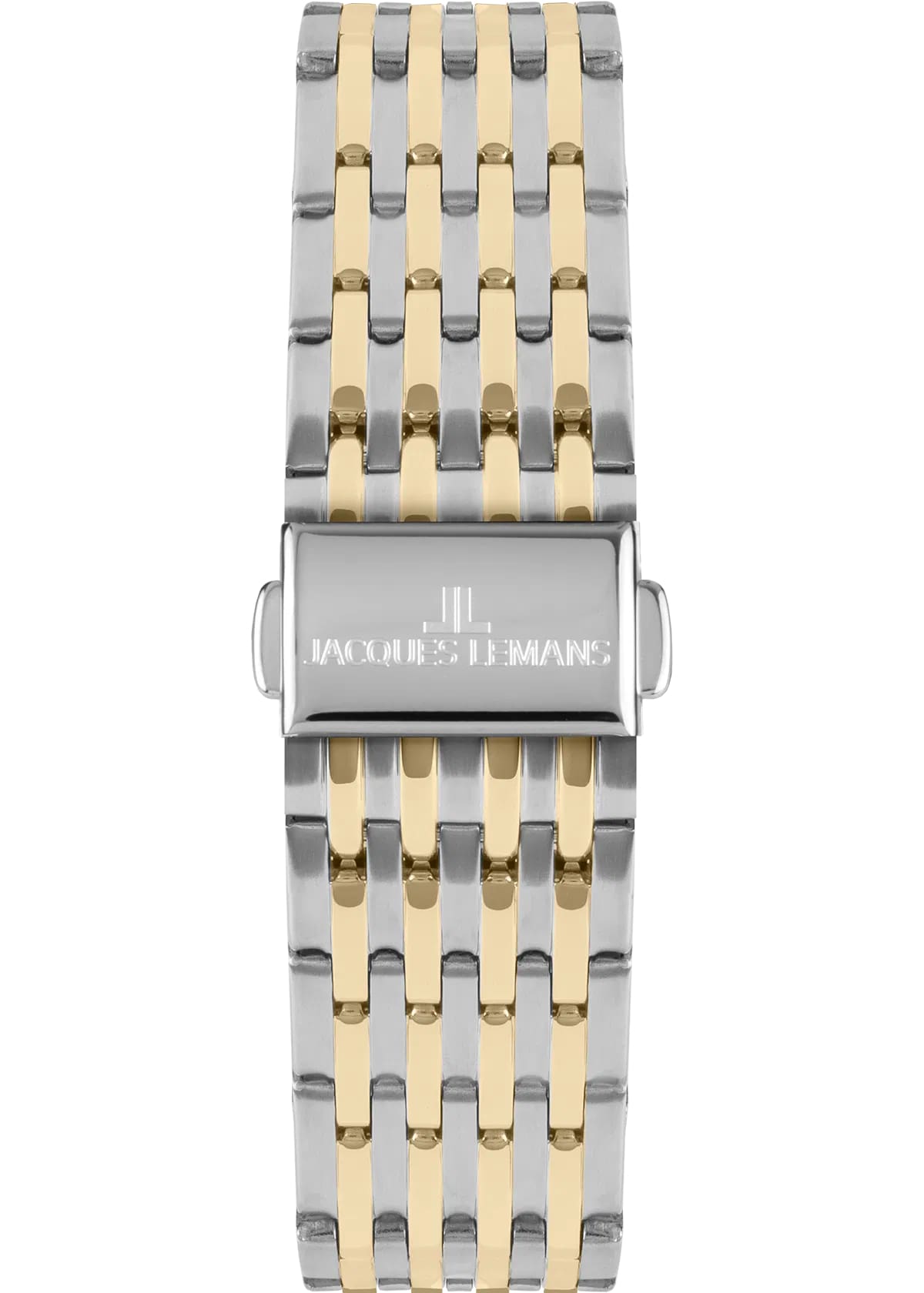 Мужские часы Jacques Lemans 1-2193J – лаконичная красота и изысканная элегантность. Корпус из нержавеющей стали диаметром 40 мм идеально сбалансирован и элегантен. Ударопрочное минеральное стеклоМинеральное стеклоМинеральное стекло представляет собой искусственно выращенный минерал кварца. Такое стекло отличается особой устойчивостью к повреждениям и царапинам. Уступает по некоторым качествам сапфировому стеклу. Crystex защищает циферблат от царапин. Стальной браслет на застёжке-бабочке с кнопкамиЗастёжка "бабочка"Такой вид застёжки дополняется предохранителями, помогающими избежать случайного раскрытия браслета. Обладают изящным исполнением. . Водозащита 50 метров защищает часы от брызг и дождя, делая их подходящими для повседневного использования. Стрелки и метки с люминесцентным покрытиемЛюминесцентное покрытиеПозволяет считывать показания времени в темноте. Производители наносят на стрелки, часовые индексы, безель или поверхность циферблата светонакопительный состав, дающий холодное свечение. позволяющие легко определять время даже в темноте. БезельБезельВнешний ободок, закрепляющий стекло. В спортивных часах так называется поворотное кольцо с делениями на циферблате, выполняет роль таймера – замеряет отрезки времени на шкале. Неподвижный безель – элемент декора. Однонаправленно вращающийся безель на дайверских часах позволяет фиксировать моменты погружения и выныривания на поверхность. с PVD-покрытиемPVDУльтратонкое покрытие наносится в технике вакуумного напыления, сочетает в себе нитрид титана особой прочности со слоем золота или оксида хрома. Несёт в себе декоративную или защитную функцию.. Окошко даты находится в положении 6 часов. Широкое окошко дня недели в положении 12 часов позволяет показывать название дня недели полностью, без сокращений.