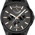 Мужские механические часы с автоподзаводом Jacques Lemans 1-2204C – лаконичная красота и изысканная элегантность. Оригинальная модель с классическим оформлением станет превосходным завершением образа, наделив его индивидуальным характером. Корпус выполнен из нержавеющей стали с PVD-покрытиемPVDУльтратонкое покрытие наносится в технике вакуумного напыления, сочетает в себе нитрид титана особой прочности со слоем золота или оксида хрома. Несёт в себе декоративную или защитную функцию. черного цвета, диаметром 44 мм, что обеспечивает долговечность и утончённый внешний вид. Минеральное стеклоМинеральное стеклоМинеральное стекло представляет собой искусственно выращенный минерал кварца. Такое стекло отличается особой устойчивостью к повреждениям и царапинам. Уступает по некоторым качествам сапфировому стеклу. с сапфировым напылением защищает циферблат от царапин. Стальной браслет на раскладной застёжкеРаскладная застёжкаТакой тип застёжки используется только на браслетах из металла. Она никогда не раскрывается полностью, происходит разделение на 2 и более частей. Раскладывающая застёжка снизит вероятность потери часов к минимуму. обеспечивает комфортное ношение. Водозащита 100 метров позволит плавать, нырять и заниматься другими водными видами спорта. Стрелки и метки с люминесцентным покрытиемЛюминесцентное покрытиеПозволяет считывать показания времени в темноте. Производители наносят на стрелки, часовые индексы, безель или поверхность циферблата светонакопительный состав, дающий холодное свечение. позволяющие легко определять время даже в темноте. Окошко даты находится в положении 6 часов. Индикатор 24-х часов, календарь недели и месяцев вынесены на отдельные циферблаты. Индикация запаса хода в положении 12 часов. Рифленая заводная головка с защитой. Это аксессуар для мужчины, который ценит классический стиль и функциональность.