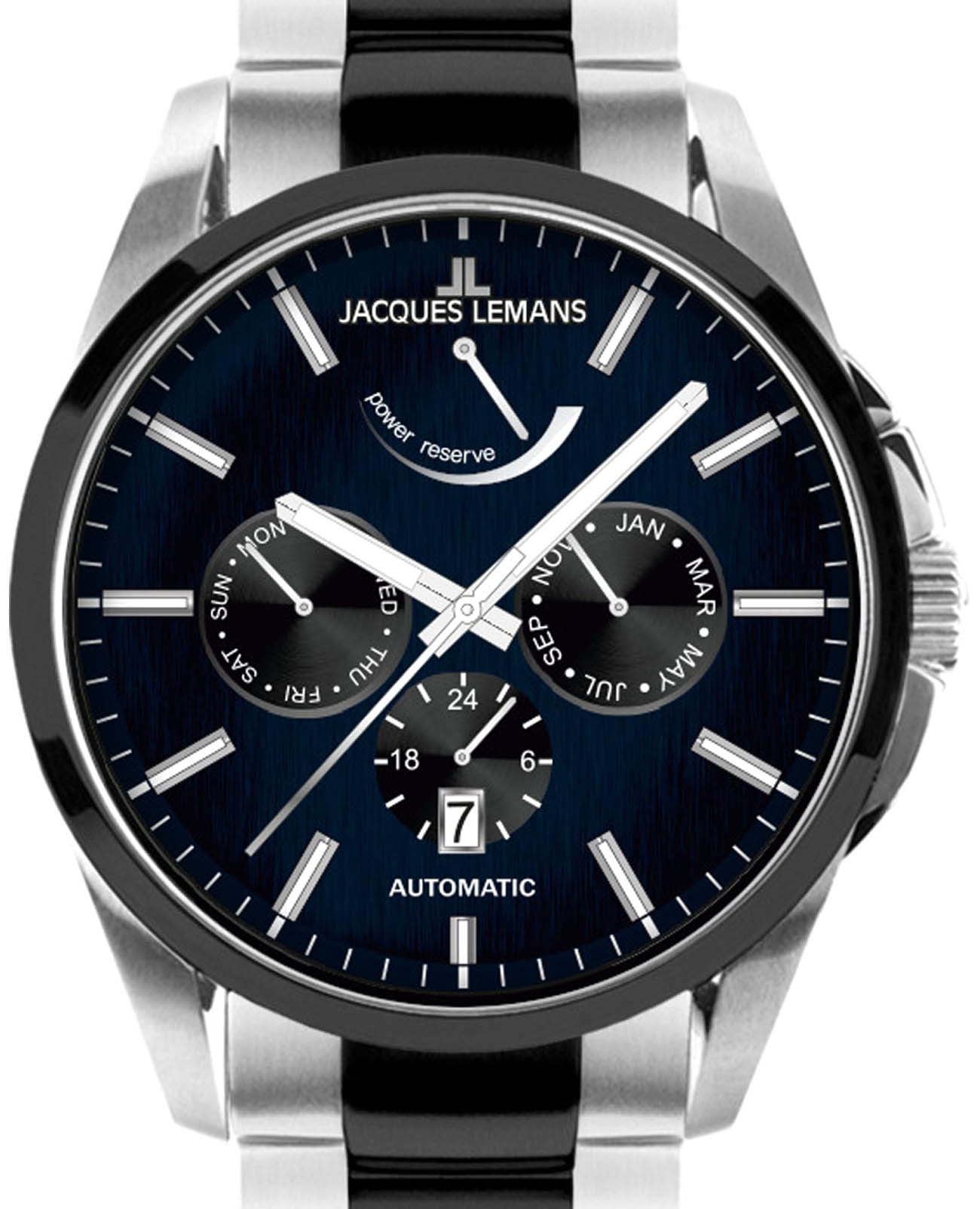 Мужские механические часы с автоподзаводом Jacques Lemans 1-2204G – лаконичная красота и изысканная элегантность. Оригинальная модель с классическим оформлением станет превосходным завершением образа, наделив его индивидуальным характером. Корпус выполнен из нержавеющей стали, диаметром 44 мм, что обеспечивает долговечность и утончённый внешний вид. Минеральное стеклоМинеральное стеклоМинеральное стекло представляет собой искусственно выращенный минерал кварца. Такое стекло отличается особой устойчивостью к повреждениям и царапинам. Уступает по некоторым качествам сапфировому стеклу. с сапфировым напылением защищает циферблат от царапин. Стальной браслет с частичным PVD-покрытиемPVDУльтратонкое покрытие наносится в технике вакуумного напыления, сочетает в себе нитрид титана особой прочности со слоем золота или оксида хрома. Несёт в себе декоративную или защитную функцию. на раскладной застёжкеРаскладная застёжкаТакой тип застёжки используется только на браслетах из металла. Она никогда не раскрывается полностью, происходит разделение на 2 и более частей. Раскладывающая застёжка снизит вероятность потери часов к минимуму. обеспечивает комфортное ношение. Неподвижный безельБезельВнешний ободок, закрепляющий стекло. В спортивных часах так называется поворотное кольцо с делениями на циферблате, выполняет роль таймера – замеряет отрезки времени на шкале. Неподвижный безель – элемент декора. Однонаправленно вращающийся безель на дайверских часах позволяет фиксировать моменты погружения и выныривания на поверхность. с PVD-покрытиемPVDУльтратонкое покрытие наносится в технике вакуумного напыления, сочетает в себе нитрид титана особой прочности со слоем золота или оксида хрома. Несёт в себе декоративную или защитную функцию. черного цвета. Водозащита 100 метров позволит плавать, нырять и заниматься другими водными видами спорта. Стрелки и метки с люминесцентным покрытиемЛюминесцентное покрытиеПозволяет считывать показания времени в темноте. Производители наносят на стрелки, часовые индексы, безель или поверхность циферблата светонакопительный состав, дающий холодное свечение. позволяющие легко определять время даже в темноте. Окошко даты находится в положении 6 часов. Индикатор 24-х часов, календарь недели и месяцев вынесены на отдельные циферблаты. Индикация запаса хода в положении 12 часов. Рифленая заводная головка с защитой. Это аксессуар для мужчины, который ценит классический стиль и функциональность.