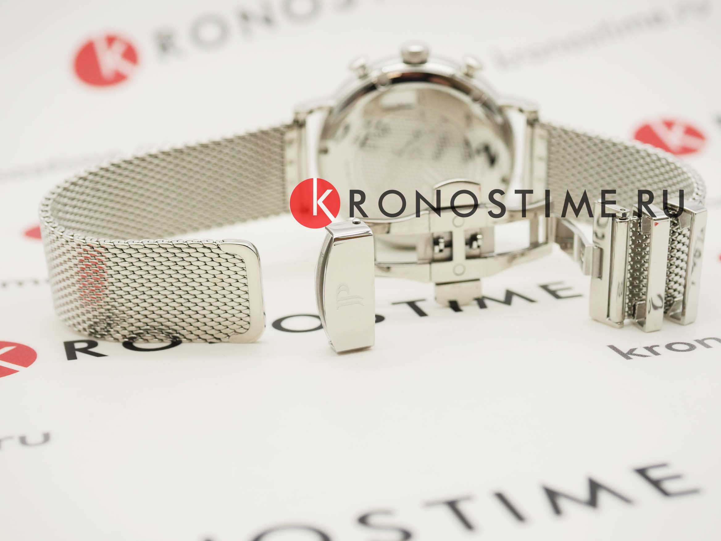 Швейцарские мужские часы-хронографХронографФункция позволяет измерять отрезки времени с особой точностью: часы, минуты, секунды. Верным признаком хронографа является наличие на циферблате 3 дополнительных окошек-счётчиков. Jacques Philippe Aviator JPQGC021236, кварцевый механизм с высокой точностью. Сапфировое стеклоСапфировое стеклоПрочный и надёжный материал из кристалла сапфира синтетического происхождения, характеризующийся особой твёрдостью и устойчивостью к царапинам и повреждениям. устойчивое к появлению царапин, обладающее высокой прозрачностью. Корпус часов изготовлен из нержавеющей стали. На циферблате три дополнительных индикатора. Окошко даты находится в положении 4 часов. Класс водозащиты: 50 метров, позволит защитить корпус от случайных брызг или капель дождя. Стальной браслет миланского плетения на раскладном замкеРаскладной замокДанный вариант застежки используется только на часах с металлическим браслетом. Отличительная особенность такого крепления в том, что длина браслета становится универсальной и вы можете самостоятельно отрегулировать нужный вам размер – застежка просто двигается по браслету часов..
