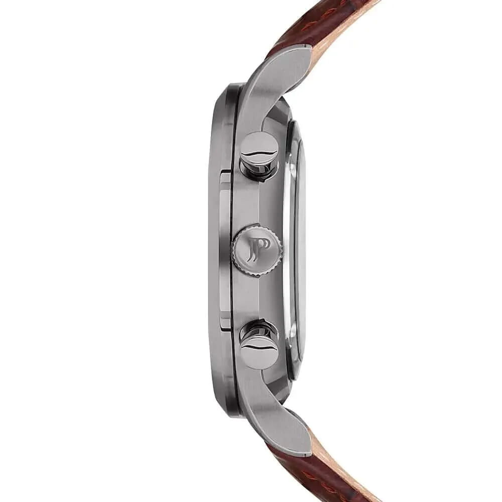 Швейцарские мужские часы-хронографХронографФункция позволяет измерять отрезки времени с особой точностью: часы, минуты, секунды. Верным признаком хронографа является наличие на циферблате 3 дополнительных окошек-счётчиков. Jacques Philippe Gallant JPQGC038143N кварцевый механизм с высокой точностью. Прочное сапфировое стеклоСапфировое стеклоПрочный и надёжный материал из кристалла сапфира синтетического происхождения, характеризующийся особой твёрдостью и устойчивостью к царапинам и повреждениям. устойчивое к появлению царапин, обладающее высокой прозрачностью. Циферблат украшен классическими стрелками с люминесцентным покрытиемЛюминесцентное покрытиеПозволяет считывать показания времени в темноте. Производители наносят на стрелки, часовые индексы, безель или поверхность циферблата светонакопительный состав, дающий холодное свечение., гармонично дополняющим общий дизайн модели. Элегантный корпус изготовлен из нержавеющей стали с IP-покрытиемIP-покрытиеМетод ионного напыления. Демонстрирует повышенную устойчивость к истиранию, окислению и химическим веществам. Под воздействием высокого давления и температуры около 1500°C молекулы металла надёжно соединяются с частицами корпуса часов., диаметром 43 мм, что делает их устойчивыми к внешним воздействиям и придает благородный вид. На циферблате три дополнительных индикатора. Кожаный ремешок на стандартной застёжке обеспечивает комфортное и безопасное ношение. Класс водозащиты: 50 метров позволит защитить корпус от случайных брызг или капель дождя. Эти часы станут идеальным выбором для мужчин, ценящих стиль, качество и функциональность.