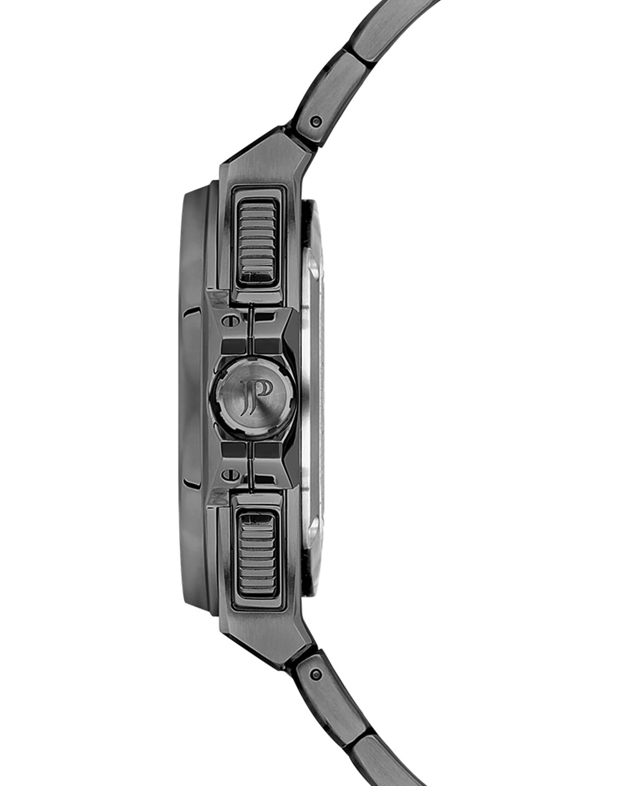 Швейцарские мужские часы-хронографХронографФункция позволяет измерять отрезки времени с особой точностью: часы, минуты, секунды. Верным признаком хронографа является наличие на циферблате 3 дополнительных окошек-счётчиков. с секундомеромСекундомерСекундоме́р — прибор, способный измерять интервалы времени с точностью до долей секунды. Jacques Philippe Esquire JPQGC048347B, кварцевый механизм с высокой точностью. Сапфировое стеклоСапфировое стеклоПрочный и надёжный материал из кристалла сапфира синтетического происхождения, характеризующийся особой твёрдостью и устойчивостью к царапинам и повреждениям. устойчивое к появлению царапин, обладающее высокой прозрачностью. Корпус часов изготовлен из нержавеющей стали. На циферблате три дополнительных индикатора. Стрелки с люминесцентным покрытиемЛюминесцентное покрытиеПозволяет считывать показания времени в темноте. Производители наносят на стрелки, часовые индексы, безель или поверхность циферблата светонакопительный состав, дающий холодное свечение.. Шкала тахиметраТахиметрРазмеченная шкала, располагается на ободке или безеле часов. Тахиметр позволяет рассчитать скорость на определённом участке пути, расстояние измеряется в километрах или милях. на циферблате. Класс водозащиты: 50 метров, позволит защитить корпус от случайных брызг или капель дождя. Стальной браслет на раскладной застёжкеРаскладная застёжкаТакой тип застёжки используется только на браслетах из металла. Она никогда не раскрывается полностью, происходит разделение на 2 и более частей. Раскладывающая застёжка снизит вероятность потери часов к минимуму..