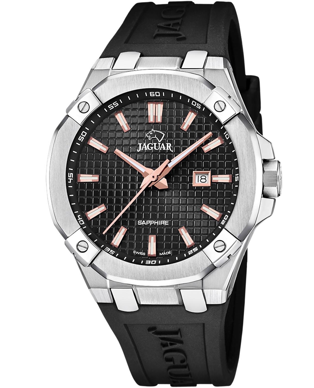 Мужские швейцарские часы JAGUAR Diplomatic J1010/4. Кварцевый швейцарский калибр Ronda 705. Сапфировое стеклоСапфировое стеклоПрочный и надёжный материал из кристалла сапфира синтетического происхождения, характеризующийся особой твёрдостью и устойчивостью к царапинам и повреждениям. устойчивое к мелким механическим повреждениям. Корпус часов изготовлен из нержавеющей стали. Стрелки и метки с люминесцентным покрытиемЛюминесцентное покрытиеПозволяет считывать показания времени в темноте. Производители наносят на стрелки, часовые индексы, безель или поверхность циферблата светонакопительный состав, дающий холодное свечение.. Окошко даты находится в положении 3 часа. Класс водозащиты: 100 метров, позволит плавать, нырять и заниматься другими водными видами спорта. Силиконовый ремешок на стандартной застёжке.
