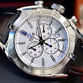Мужские швейцарские часы-хронографХронографФункция позволяет измерять отрезки времени с особой точностью: часы, минуты, секунды. Верным признаком хронографа является наличие на циферблате 3 дополнительных окошек-счётчиков. Jaguar Executive Chrono J857/A. Кварцевый швейцарский калибр Ronda 5030d. Сапфировое стеклоСапфировое стеклоПрочный и надёжный материал из кристалла сапфира синтетического происхождения, характеризующийся особой твёрдостью и устойчивостью к царапинам и повреждениям. устойчивое к мелким механическим повреждениям. Корпус и браслет часов изготовлены из нержавеющей стали. Стрелки и метки с люминесцентным покрытиемЛюминесцентное покрытиеПозволяет считывать показания времени в темноте. Производители наносят на стрелки, часовые индексы, безель или поверхность циферблата светонакопительный состав, дающий холодное свечение.. Окошко даты находится в положении между «4» и «5 часами». Класс водозащиты: 100 метров, позволит плавать, нырять и заниматься другими водными видами спорта. Кожаный ремешок на стандартной застёжке.