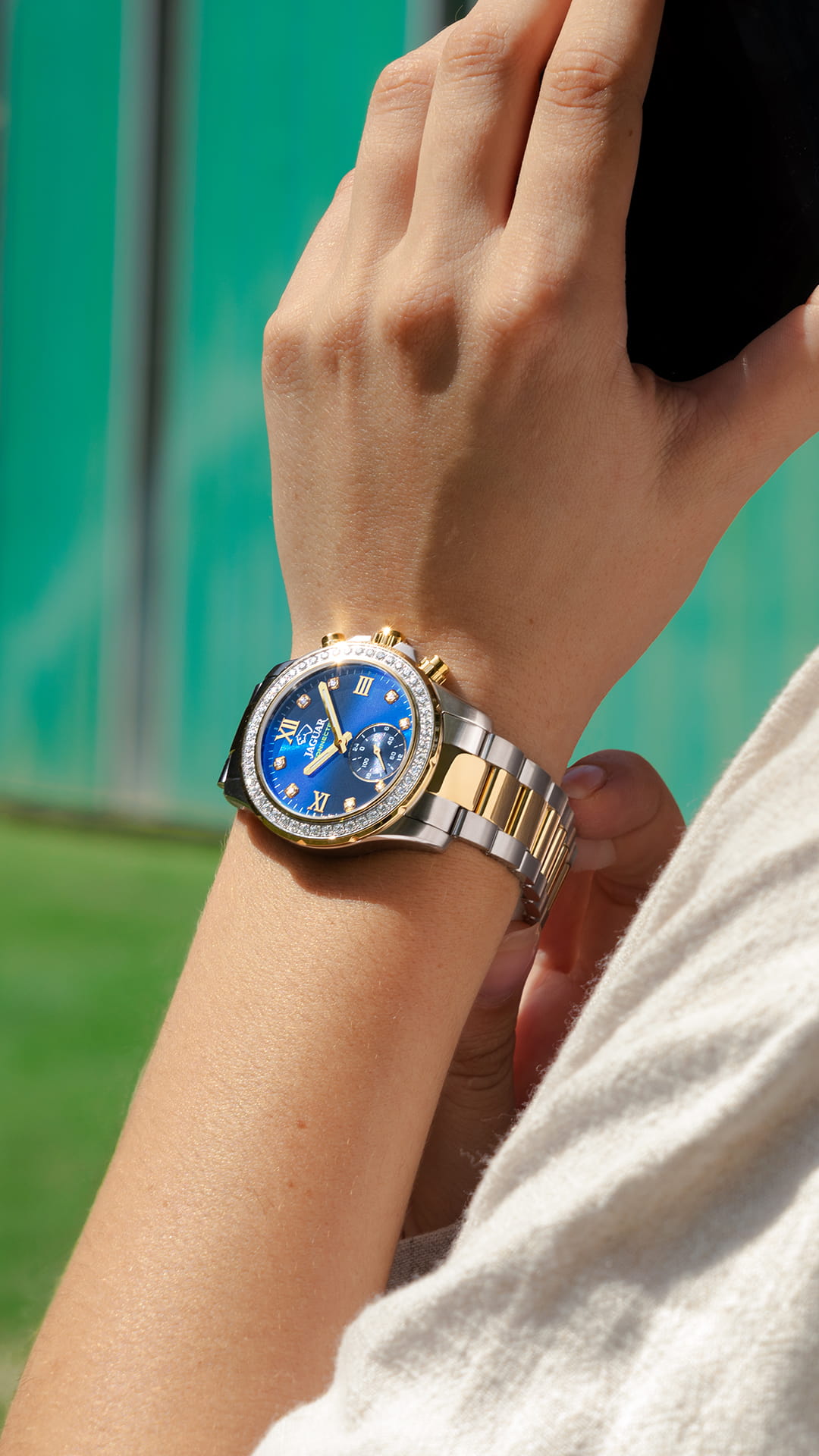 Женские швейцарские часы Jaguar Connected Lady J982/3. Сапфировое стеклоСапфировое стеклоПрочный и надёжный материал из кристалла сапфира синтетического происхождения, характеризующийся особой твёрдостью и устойчивостью к царапинам и повреждениям. устойчивое к мелким механическим повреждениям. Корпус часов изготовлен из нержавеющей стали. Стрелки с люминесцентным покрытиемЛюминесцентное покрытиеПозволяет считывать показания времени в темноте. Производители наносят на стрелки, часовые индексы, безель или поверхность циферблата светонакопительный состав, дающий холодное свечение.. Класс водозащиты: 50 метров, позволит защитить корпус от случайных брызг или капель дождя. БезельБезельВнешний ободок, закрепляющий стекло. В спортивных часах так называется поворотное кольцо с делениями на циферблате, выполняет роль таймера – замеряет отрезки времени на шкале. Неподвижный безель – элемент декора. Однонаправленно вращающийся безель на дайверских часах позволяет фиксировать моменты погружения и выныривания на поверхность. с PVD-покрытиемPVDУльтратонкое покрытие наносится в технике вакуумного напыления, сочетает в себе нитрид титана особой прочности со слоем золота или оксида хрома. Несёт в себе декоративную или защитную функцию. и циферблат инкрустированы цирконием. Стальной браслет с частичным PVD-покрытиемPVDУльтратонкое покрытие наносится в технике вакуумного напыления, сочетает в себе нитрид титана особой прочности со слоем золота или оксида хрома. Несёт в себе декоративную или защитную функцию. на раскладной застёжкеРаскладная застёжкаТакой тип застёжки используется только на браслетах из металла. Она никогда не раскрывается полностью, происходит разделение на 2 и более частей. Раскладывающая застёжка снизит вероятность потери часов к минимуму.. За точный ход работы часов, из коллекции Connected, отвечает кварцевый гибридный механизм швейцарского производства со Смарт-Модулем. Данный тип механизма обеспечивает возможность подключить часы к телефону через Bluetooth и управлять большим рядом дополнительных функций на выбор с помошью приложения Jaguar. Дополнительные функции: отображение даты и дня недели, секундомер, таймер, GMT, шагомер, поиск телефона, включение/выключение звука телефона при входящих вызовах, переключение музыки, вибро-уведомления.