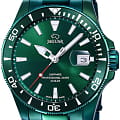 Мужские швейцарские часы Jaguar Executive Diver J988/1. Кварцевый швейцарский калибр Ronda 6003D. Сапфировое стеклоСапфировое стеклоПрочный и надёжный материал из кристалла сапфира синтетического происхождения, характеризующийся особой твёрдостью и устойчивостью к царапинам и повреждениям. устойчивое к мелким механическим повреждениям. Корпус и браслет часов изготовлены из нержавеющей стали с PVD-покрытиемPVDУльтратонкое покрытие наносится в технике вакуумного напыления, сочетает в себе нитрид титана особой прочности со слоем золота или оксида хрома. Несёт в себе декоративную или защитную функцию.. Стрелки и метки с люминесцентным покрытиемЛюминесцентное покрытиеПозволяет считывать показания времени в темноте. Производители наносят на стрелки, часовые индексы, безель или поверхность циферблата светонакопительный состав, дающий холодное свечение.. Окошко даты находится в положении 3 часа. Класс водозащиты: 200 метров, позволит плавать, нырять и заниматься другими водными видами спорта. Стальной браслет на раскладной застёжкеРаскладная застёжкаТакой тип застёжки используется только на браслетах из металла. Она никогда не раскрывается полностью, происходит разделение на 2 и более частей. Раскладывающая застёжка снизит вероятность потери часов к минимуму.. БезельБезельВнешний ободок, закрепляющий стекло. В спортивных часах так называется поворотное кольцо с делениями на циферблате, выполняет роль таймера – замеряет отрезки времени на шкале. Неподвижный безель – элемент декора. Однонаправленно вращающийся безель на дайверских часах позволяет фиксировать моменты погружения и выныривания на поверхность. с PVD-покрытиемPVDУльтратонкое покрытие наносится в технике вакуумного напыления, сочетает в себе нитрид титана особой прочности со слоем золота или оксида хрома. Несёт в себе декоративную или защитную функцию..