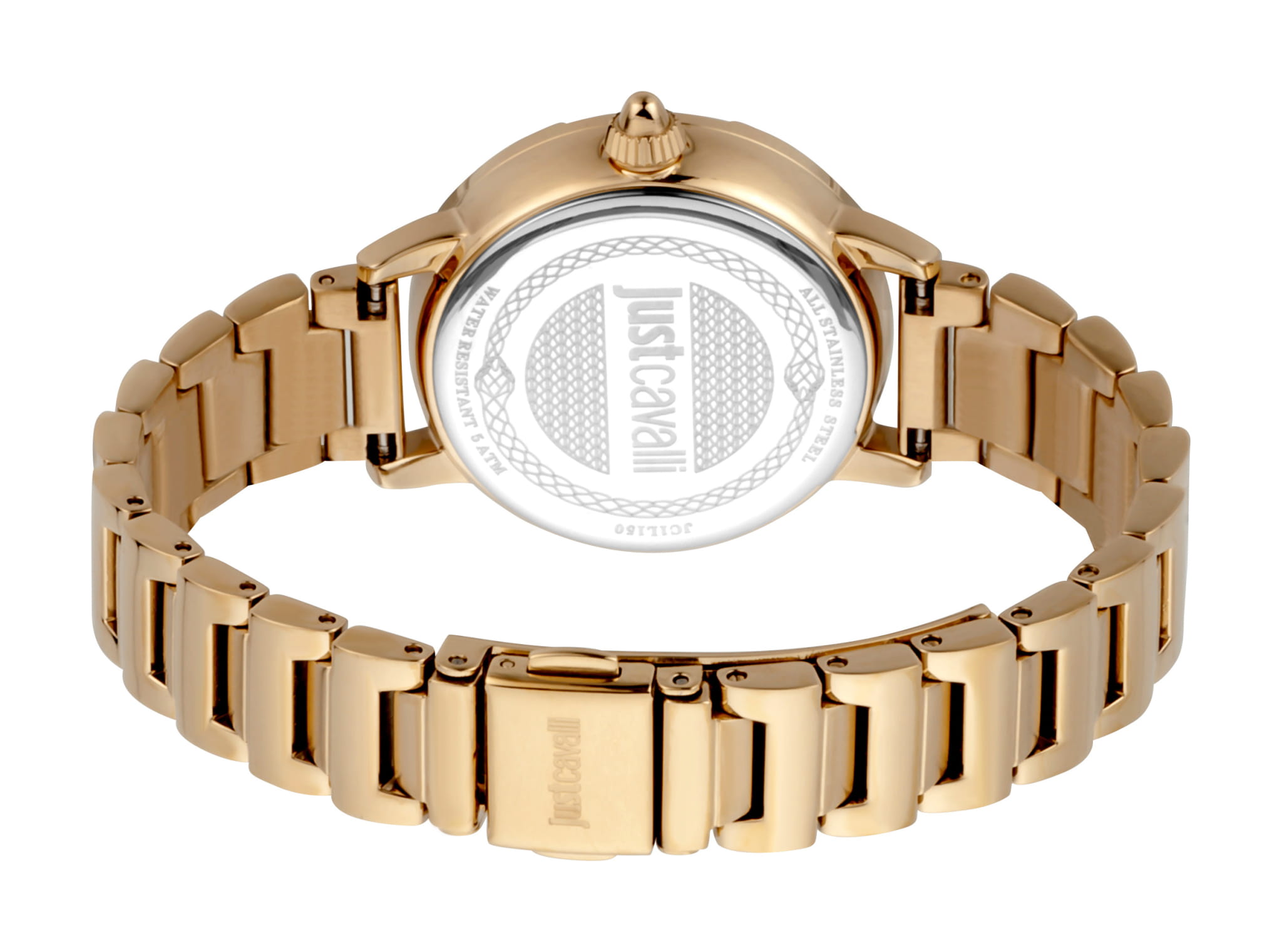 Итальянские женские часы с кварцевым механизмом Just Cavalli animalier JC1L150M0055, кварцевый механизм с высокой точностью. Класс водозащиты: 50 метров, позволит защитить корпус от случайных брызг или капель дождя. Корпус часов изготовлен из стали, золотистого цвета.