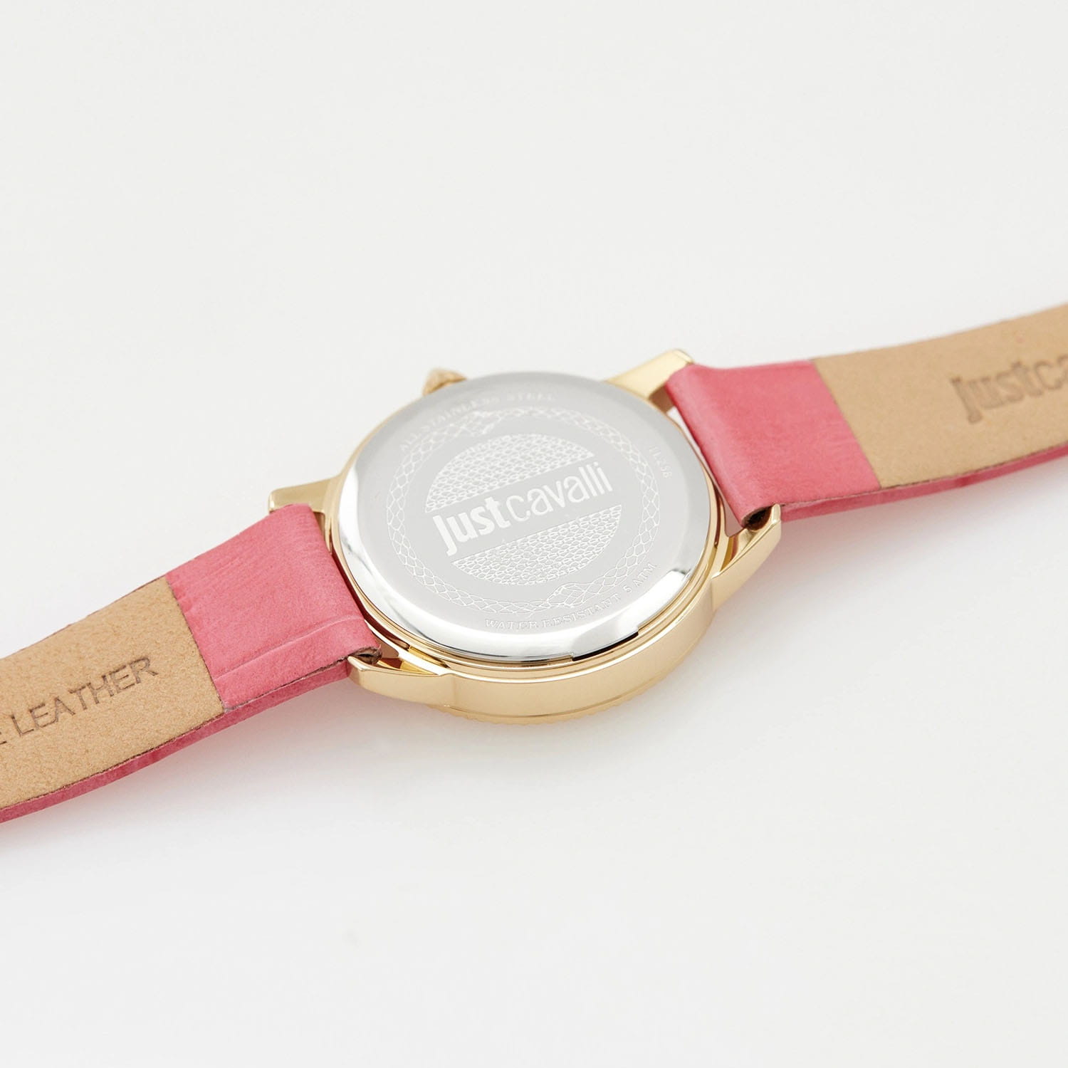Элегантные женские часы Just Cavalli JC1L258L0215 с минеральным стекломМинеральное стеклоМинеральное стекло представляет собой искусственно выращенный минерал кварца. Такое стекло отличается особой устойчивостью к повреждениям и царапинам. Уступает по некоторым качествам сапфировому стеклу., кварцевый механизм с высокой точностью. Циферблат украшен кристаллами. Корпус часов изготовлен из стали с PVD-покрытиемPVDУльтратонкое покрытие наносится в технике вакуумного напыления, сочетает в себе нитрид титана особой прочности со слоем золота или оксида хрома. Несёт в себе декоративную или защитную функцию.. Класс водозащиты: 50 метров, позволит защитить корпус от случайных брызг или капель дождя. Кожаный ремешок на стандартной застёжке.