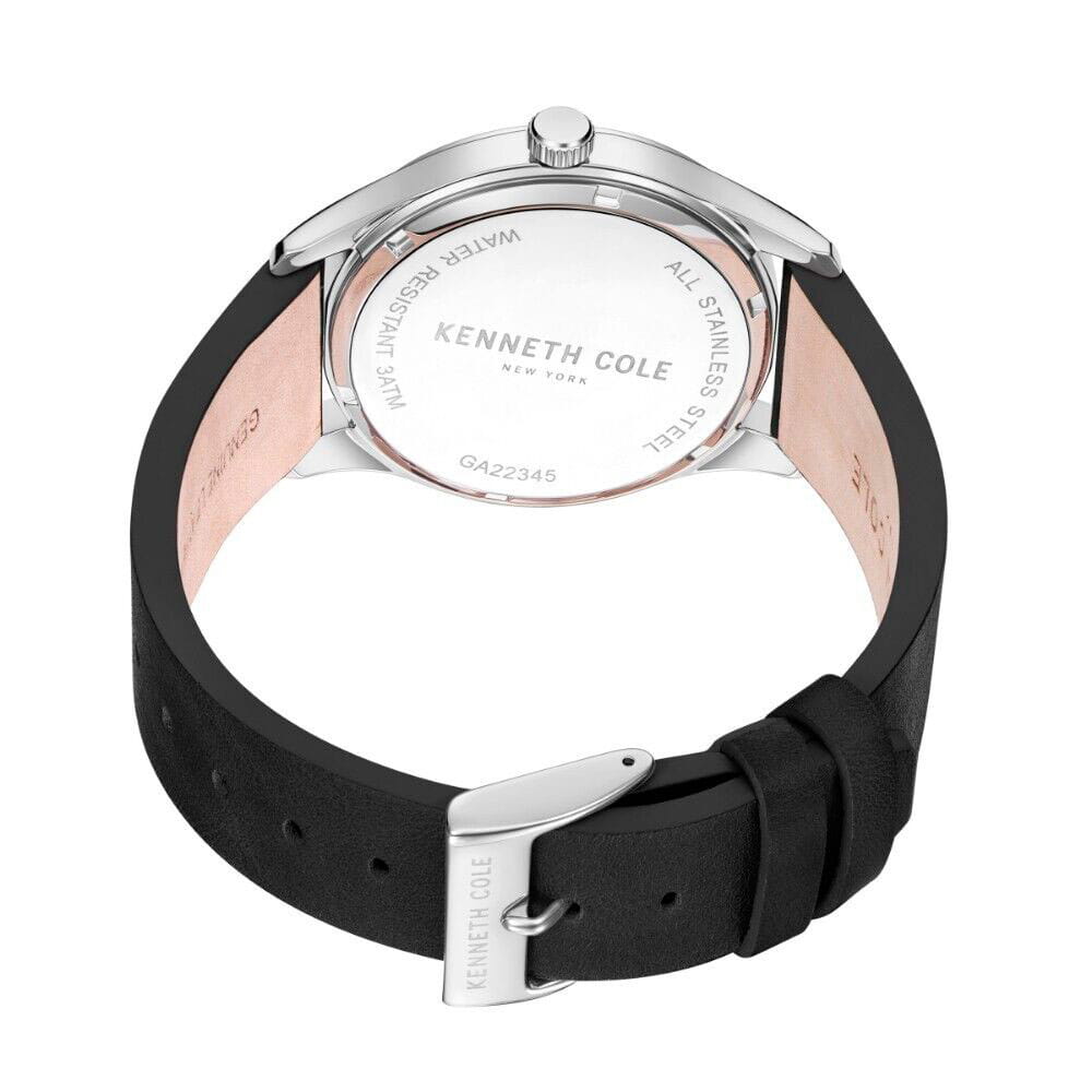 Мужские кварцевые часы с минеральным стекломМинеральное стеклоМинеральное стекло представляет собой искусственно выращенный минерал кварца. Такое стекло отличается особой устойчивостью к повреждениям и царапинам. Уступает по некоторым качествам сапфировому стеклу. Kenneth Cole Classic KCWGA2234504, кварцевый механизм с высокой точностью. Класс водозащиты: 30 метров, позволит защитить корпус от случайных брызг или капель дождя. Корпус часов изготовлен из стали. Кожаный ремешок на стандартной застёжке. Стрелки с люминесцентным покрытиемЛюминесцентное покрытиеПозволяет считывать показания времени в темноте. Производители наносят на стрелки, часовые индексы, безель или поверхность циферблата светонакопительный состав, дающий холодное свечение..