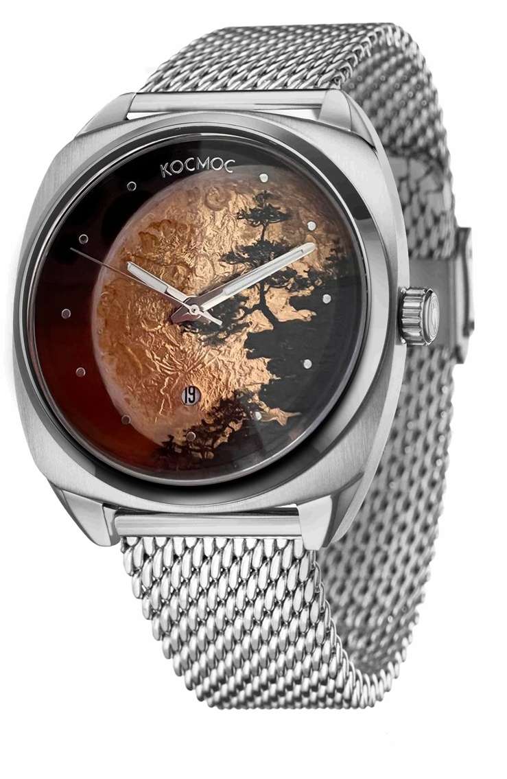 Российские мужские механические часы Космос D 113.1 - Суперлуние с автоподзаводом оснащены надежным механизмом TMI. Прямоугольный корпус из нержавеющей стали размером 50x44 мм защищен прочным минеральным стекломМинеральное стеклоМинеральное стекло представляет собой искусственно выращенный минерал кварца. Такое стекло отличается особой устойчивостью к повреждениям и царапинам. Уступает по некоторым качествам сапфировому стеклу.. Модель имеет класс водозащиты 100 метров, позволит плавать, заниматься другими водными видами спорта. циферблат дополнен функцией отображения даты. Часы комплектуются браслетом из нержавеющей стали с миланским плетением на раскладном замкеРаскладной замокДанный вариант застежки используется только на часах с металлическим браслетом. Отличительная особенность такого крепления в том, что длина браслета становится универсальной и вы можете самостоятельно отрегулировать нужный вам размер – застежка просто двигается по браслету часов.. Уникальный дизайн модели отражает тематику космических полетов, делая эти часы не только функциональным аксессуаром, но и стильным элементом гардероба для современного мужчины.