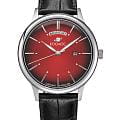 Мужские наручные часы Космос Орион K 011.11.35 — это сочетание традиций часового искусства 60-70-х годов и футуристического дизайна, вдохновленного космическими исследованиями. Они не только служат напоминанием о прошлом, но и побуждают задуматься о будущем, позволяя наслаждаться качеством и смыслом, вложенными в каждую деталь. Полированный корпус часов выполнен в виде силуэта летающей тарелки благодаря выпуклым формам стекла и нижней части корпуса. Стальные ушки, которые напоминают опоры летающей тарелки, завершает общий образ. На задней крышке часов выгравирован фантазийный сюжет – космическая станция будущего. Бордовый циферблат, выполненный в ретро-стиле, имеет выгнутые края, что требует использования сложной технологии производства. Такой дизайн был характерен для часов прошлых эпох. Секундная стрелка, имеющая изогнутую форму, идеально соответствует контуру циферблата. Выпуклый градиентный циферблат с шлифовкой, напоминающей солнечные лучи, украшен вручную изготовленными индексами, которые надежно крепятся на двух штифтах. Часовая и минутная стрелки, а также линия по краю циферблата, напоминающая ореол Земли, имеют люминесцентное покрытиеЛюминесцентное покрытиеПозволяет считывать показания времени в темноте. Производители наносят на стрелки, часовые индексы, безель или поверхность циферблата светонакопительный состав, дающий холодное свечение., которое светится в темноте, создавая впечатляющий визуальный эффект. В верхней части циферблата расположено окошко для отображения дня недели на английском языке, а индикаторы даты и дня недели дополнительно украшены фасочками, что придает им элегантный вид. Форма минерального стеклаМинеральное стеклоМинеральное стекло представляет собой искусственно выращенный минерал кварца. Такое стекло отличается особой устойчивостью к повреждениям и царапинам. Уступает по некоторым качествам сапфировому стеклу. также тщательно продумана, оно изогнуто как снаружи, так и изнутри. Это позволяет избежать искажений изображения на циферблате, в отличие от традиционного стекла с прямой внутренней частью, создающего эффект линзы. Ремешок из натуральной кожи черного цвета прекрасно дополняет часы. Также имеется возможность приобрести дополнительные ремни и браслеты миланского плетения, которые можно легко менять благодаря специальным крепежам. Заводная головка, застежка и ремешок украшены фирменным логотипом, подчеркивающим индивидуальность и стиль модели.
