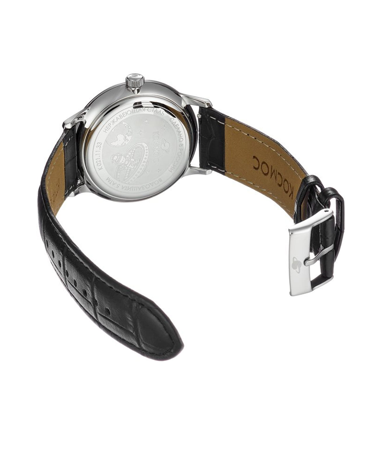 Мужские наручные часы Космос Сириус К 021.11.35 — это сочетание традиций часового искусства 60-70-х годов и футуристического дизайна, вдохновленного космическими исследованиями. Они не только служат напоминанием о прошлом, но и побуждают задуматься о будущем, позволяя наслаждаться качеством и смыслом, вложенными в каждую деталь. Полированный корпус часов выполнен в виде силуэта летающей тарелки благодаря выпуклым формам стекла и нижней части корпуса. Стальные ушки, которые напоминают опоры летающей тарелки, завершает общий образ. На задней крышке часов выгравирован фантазийный сюжет – космическая станция будущего. Бордовый циферблат в ретро-стиле с выгнутыми краями требует сложной технологии производства, что делает их аналогами часов прошлых эпох. Кончик секундной стрелки изогнут так, чтобы гармонировать с формой циферблата. Выпуклый градиентный циферблат украшен шлифовкой, напоминающей солнечные лучи, и ручными индексами, надежно закрепленными на двух штифтах. Специальное люминесцентное покрытиеЛюминесцентное покрытиеПозволяет считывать показания времени в темноте. Производители наносят на стрелки, часовые индексы, безель или поверхность циферблата светонакопительный состав, дающий холодное свечение. нанесено на часовую, минутную и секундную стрелки, а также на пунктирные метки и окантовку циферблата, создавая эффект светящегося изображения в темноте. Форма минерального стеклаМинеральное стеклоМинеральное стекло представляет собой искусственно выращенный минерал кварца. Такое стекло отличается особой устойчивостью к повреждениям и царапинам. Уступает по некоторым качествам сапфировому стеклу. также тщательно продумана — оно изогнуто как снаружи, так и изнутри. Эта конструкция предотвращает искажение изображения на циферблате, в отличие от традиционных стекол с прямой внутренней частью, которые могут создавать оптические искажения. Часы комплектуются кожаным браслетом черного цвета с прошивкой. Корпус изготовлен из гипоаллергенной стали, что обеспечивает комфорт при ношении. Заводная головка, застежка и ремешок украшены фирменным логотипом, подчеркивающим индивидуальность данной модели.