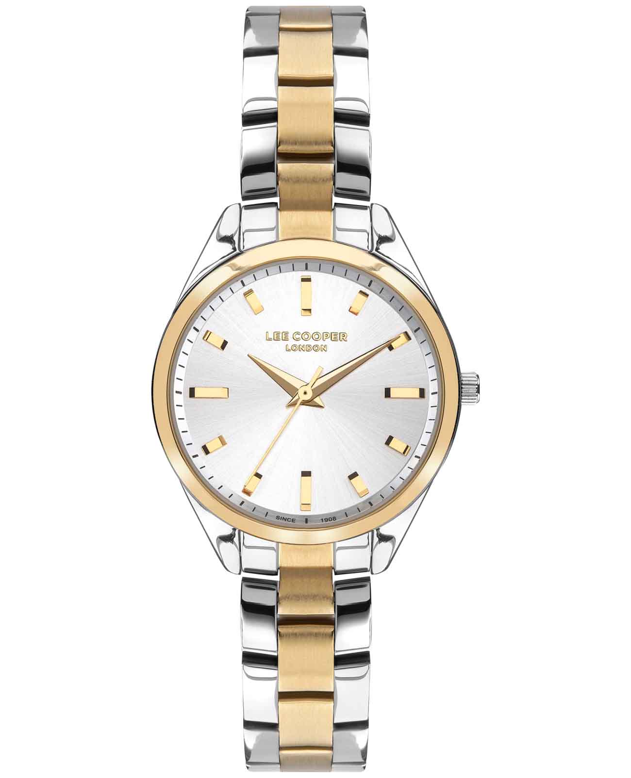 Женские наручные часы Lee Cooper LC07453.230 — это элегантная модель с утончённым дизайном. Корпус диаметром 33 мм выполнен из нержавеющей стали, что придаёт часам изысканный вид. Серебристый циферблат украшен изящными метками и стрелками обеспечивая удобное считывание времени. Циферблат защищён минеральным стекломМинеральное стеклоМинеральное стекло представляет собой искусственно выращенный минерал кварца. Такое стекло отличается особой устойчивостью к повреждениям и царапинам. Уступает по некоторым качествам сапфировому стеклу., устойчивым к царапинам. Часы работают на кварцевом механизме, обеспечивая точность хода. Браслет из нержавеющей стали с раскладной застёжкойРаскладная застёжкаТакой тип застёжки используется только на браслетах из металла. Она никогда не раскрывается полностью, происходит разделение на 2 и более частей. Раскладывающая застёжка снизит вероятность потери часов к минимуму. гарантирует комфортное ношение и надёжную фиксацию на запястье. Водозащита 30 метров защищает часы от случайных брызг и дождя, делая их подходящими для повседневного использования. БезельБезельВнешний ободок, закрепляющий стекло. В спортивных часах так называется поворотное кольцо с делениями на циферблате, выполняет роль таймера – замеряет отрезки времени на шкале. Неподвижный безель – элемент декора. Однонаправленно вращающийся безель на дайверских часах позволяет фиксировать моменты погружения и выныривания на поверхность. с IP-покрытиемIP-покрытиеМетод ионного напыления. Демонстрирует повышенную устойчивость к истиранию, окислению и химическим веществам. Под воздействием высокого давления и температуры около 1500°C молекулы металла надёжно соединяются с частицами корпуса часов..