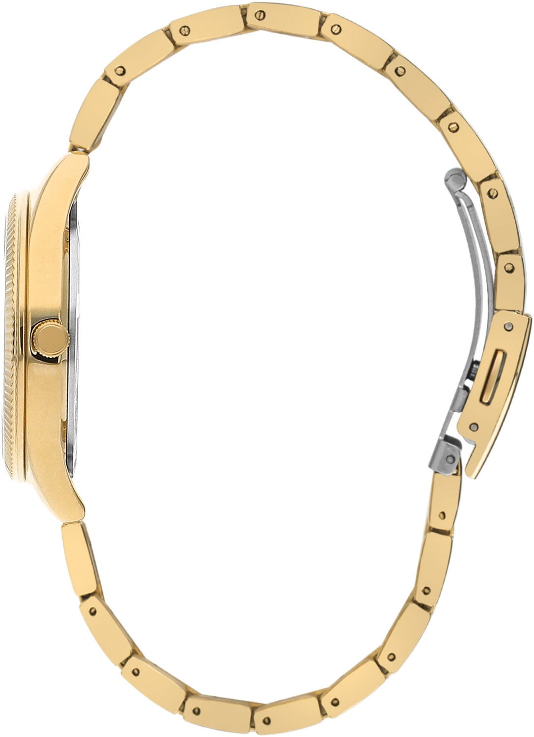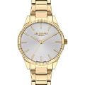Женские часы Lee Cooper LC07543.130 — это стильное сочетание элегантности и современного дизайна. Круглый корпус диаметром 34 мм выполнен из суперметалла с IP-покрытиемIP-покрытиеМетод ионного напыления. Демонстрирует повышенную устойчивость к истиранию, окислению и химическим веществам. Под воздействием высокого давления и температуры около 1500°C молекулы металла надёжно соединяются с частицами корпуса часов. золотого цвета, что придает модели особый блеск. Серебристый циферблат защищен минеральным стекломМинеральное стеклоМинеральное стекло представляет собой искусственно выращенный минерал кварца. Такое стекло отличается особой устойчивостью к повреждениям и царапинам. Уступает по некоторым качествам сапфировому стеклу., обеспечивающим устойчивость к царапинам. Неподвижный рифленый безельБезельВнешний ободок, закрепляющий стекло. В спортивных часах так называется поворотное кольцо с делениями на циферблате, выполняет роль таймера – замеряет отрезки времени на шкале. Неподвижный безель – элемент декора. Однонаправленно вращающийся безель на дайверских часах позволяет фиксировать моменты погружения и выныривания на поверхность.. Метки в виде штрихов. Часы оснащены надежным кварцевым механизмом, а металлический браслет с IP-покрытиемIP-покрытиеМетод ионного напыления. Демонстрирует повышенную устойчивость к истиранию, окислению и химическим веществам. Под воздействием высокого давления и температуры около 1500°C молекулы металла надёжно соединяются с частицами корпуса часов. на раскладной застёжкеРаскладная застёжкаТакой тип застёжки используется только на браслетах из металла. Она никогда не раскрывается полностью, происходит разделение на 2 и более частей. Раскладывающая застёжка снизит вероятность потери часов к минимуму. гарантирует комфортную посадку на запястье. Водозащита 30 метров защищает модель от случайных брызг и дождя. Lee Cooper  — отличный выбор для тех, кто ценит утонченность и качество.